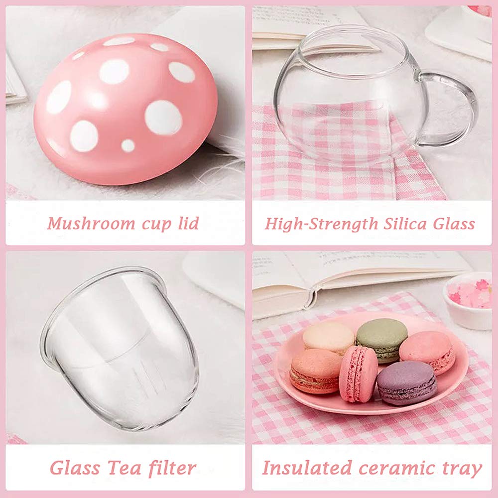 Cute Cups Mushroom Tea Cup With Infuser And Lid, Kawaii Glass Tea Cups And Saucers, 290Ml Mushroom Tea Mugs With Spoon, Perfect