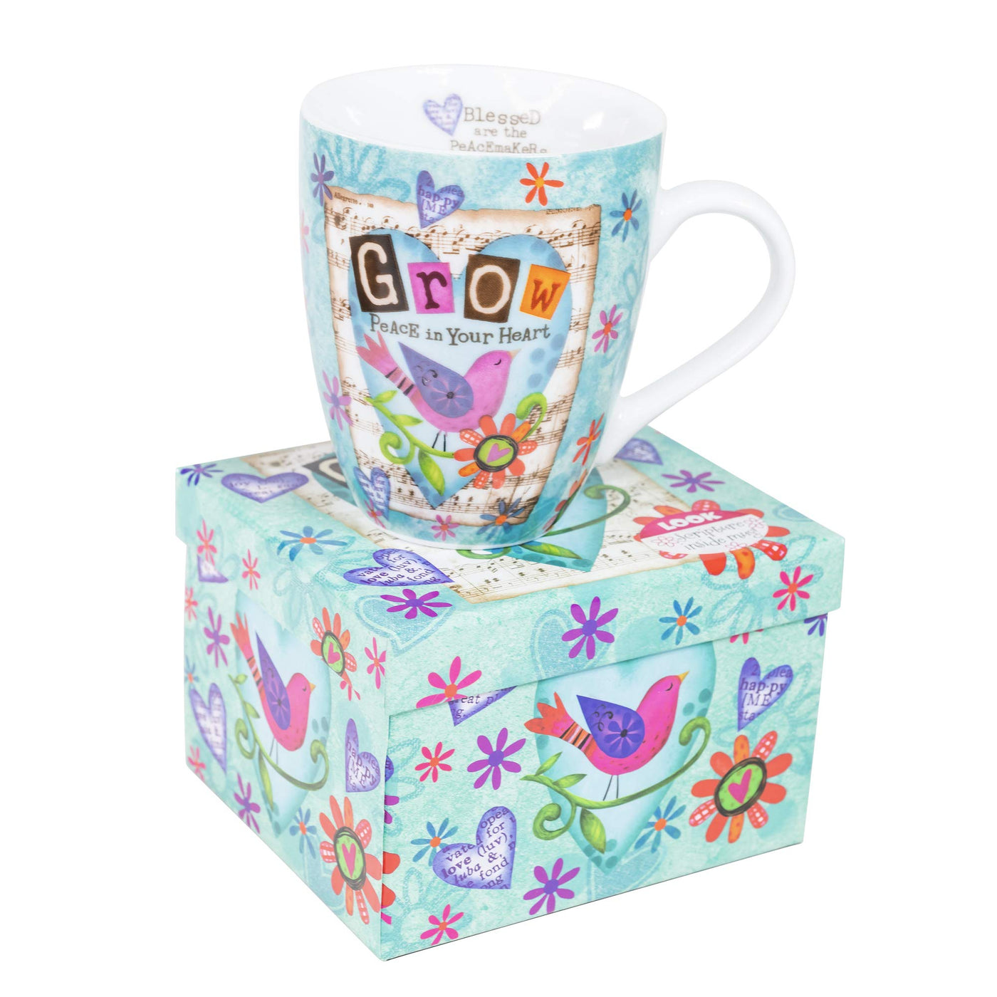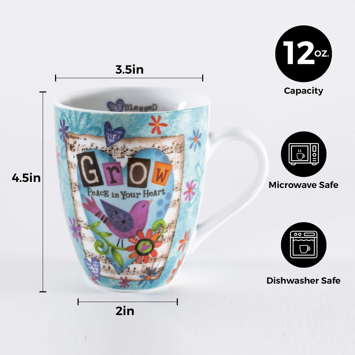 Divinity Boutique Ceramic Mug Grow Peace Bird, 1 Count (Pack of 1)