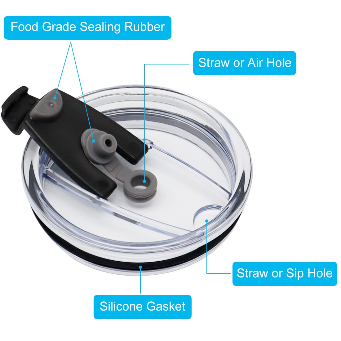 • Q: How does the lid ensure a good seal? A: The DOCIK lids feature a resilient black silicone gasket around the base, which helps to seal your tumbler tightly and prevent leaks.