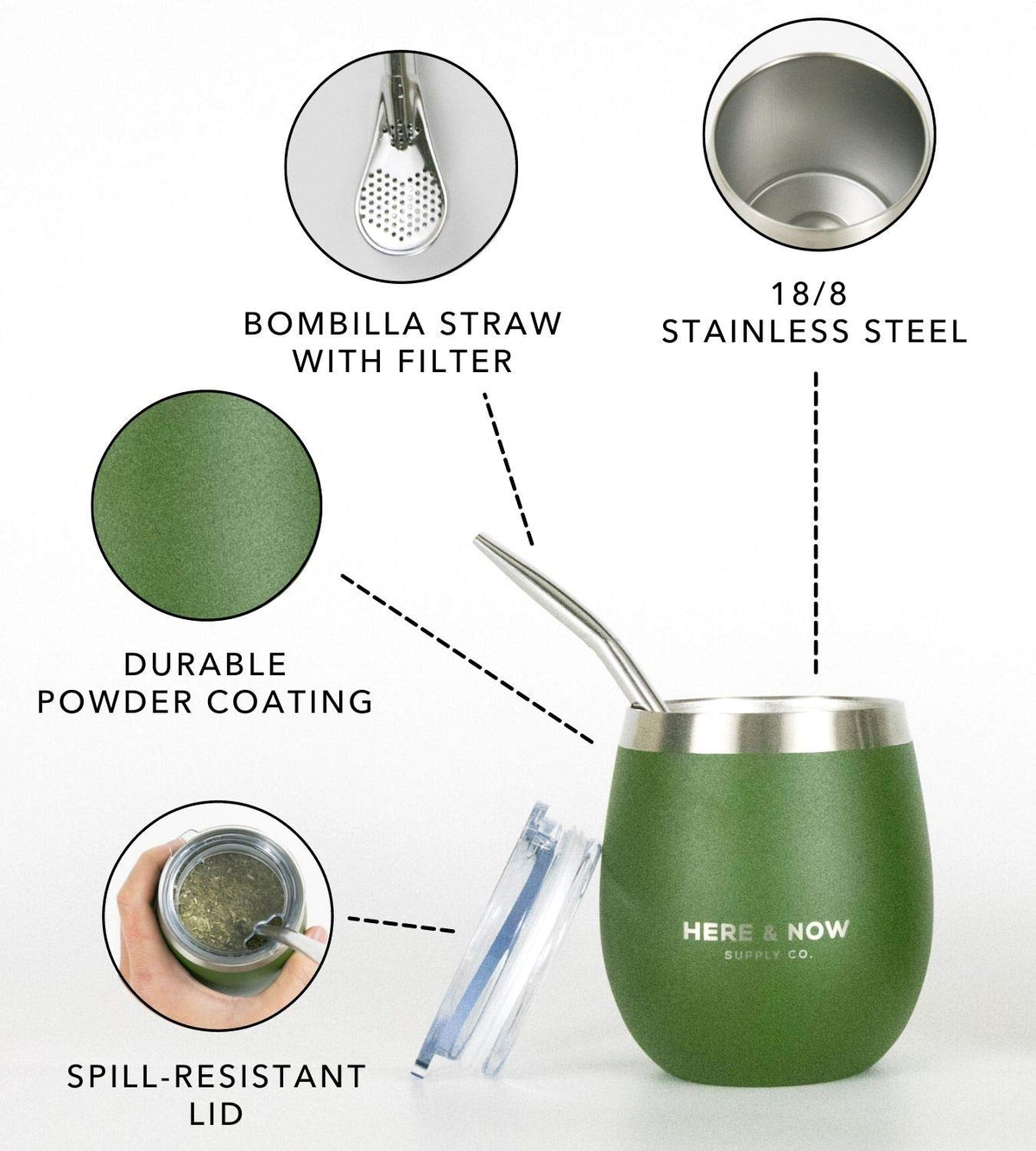 - Q: How do I prepare yerba mate using this set? A: Simply pour loose leaf yerba mate into the cup, insert the bombilla straw, and secure the lid to enjoy.