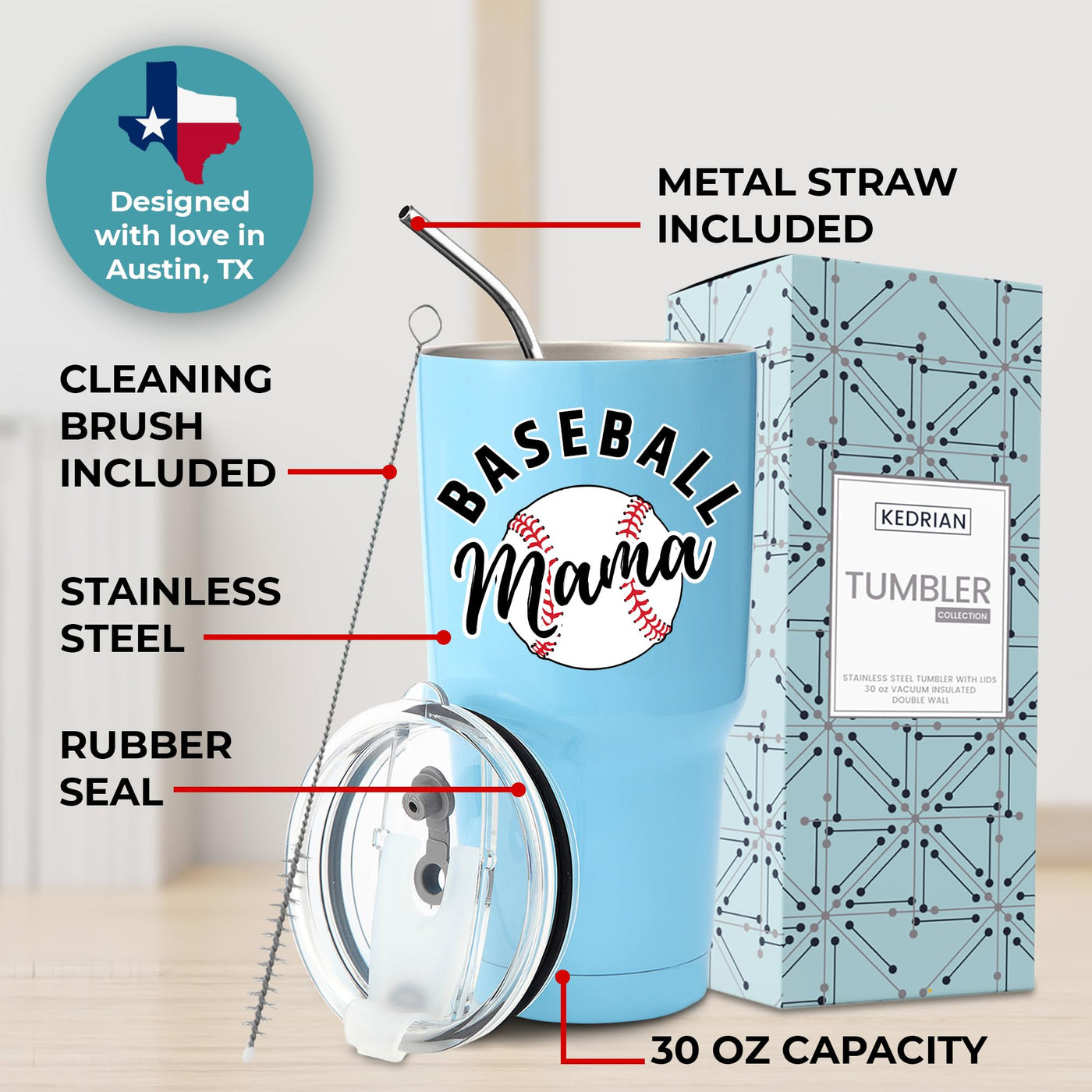KEDRIAN Baseball Mama Tumbler 30oz, Baseball Mom Gift Ideas, Baseball Coffee Travel Mug, Birthday, Christmas, Gift Ready