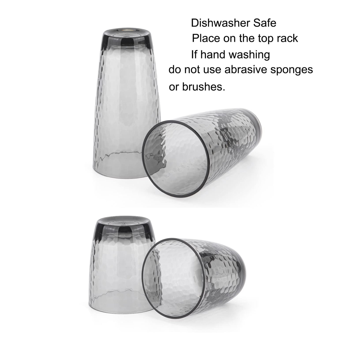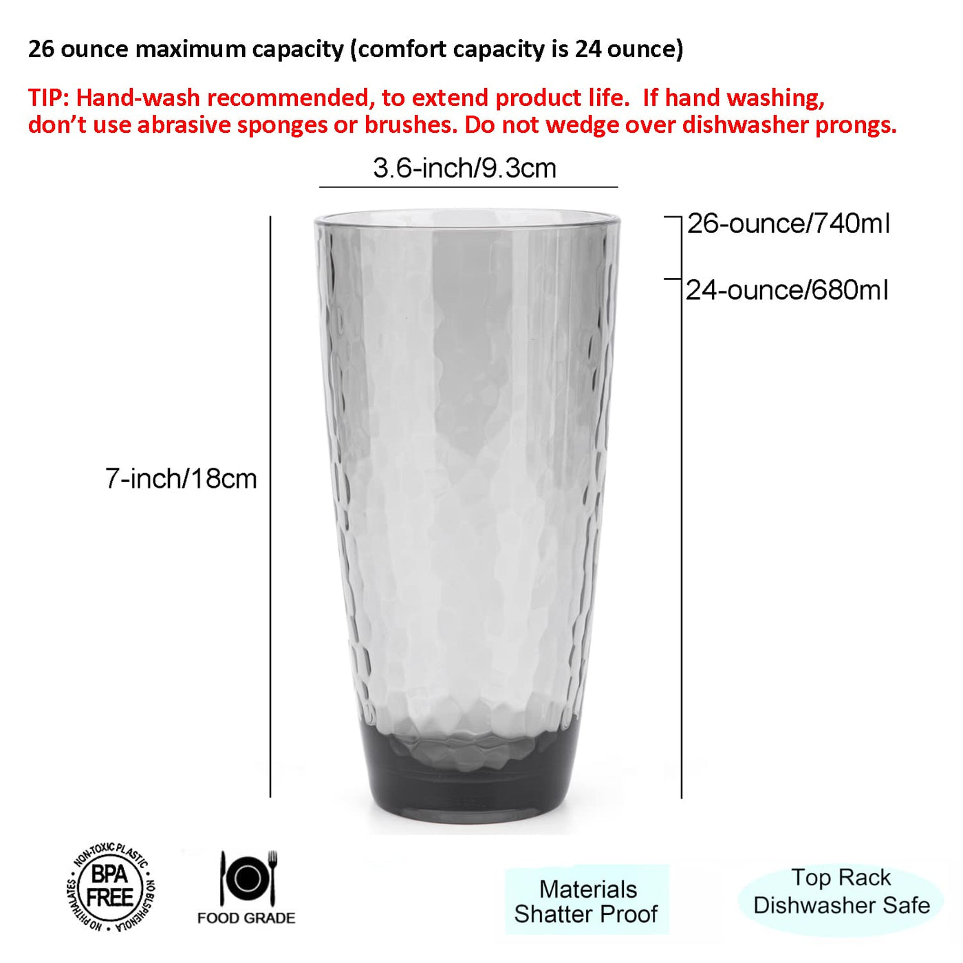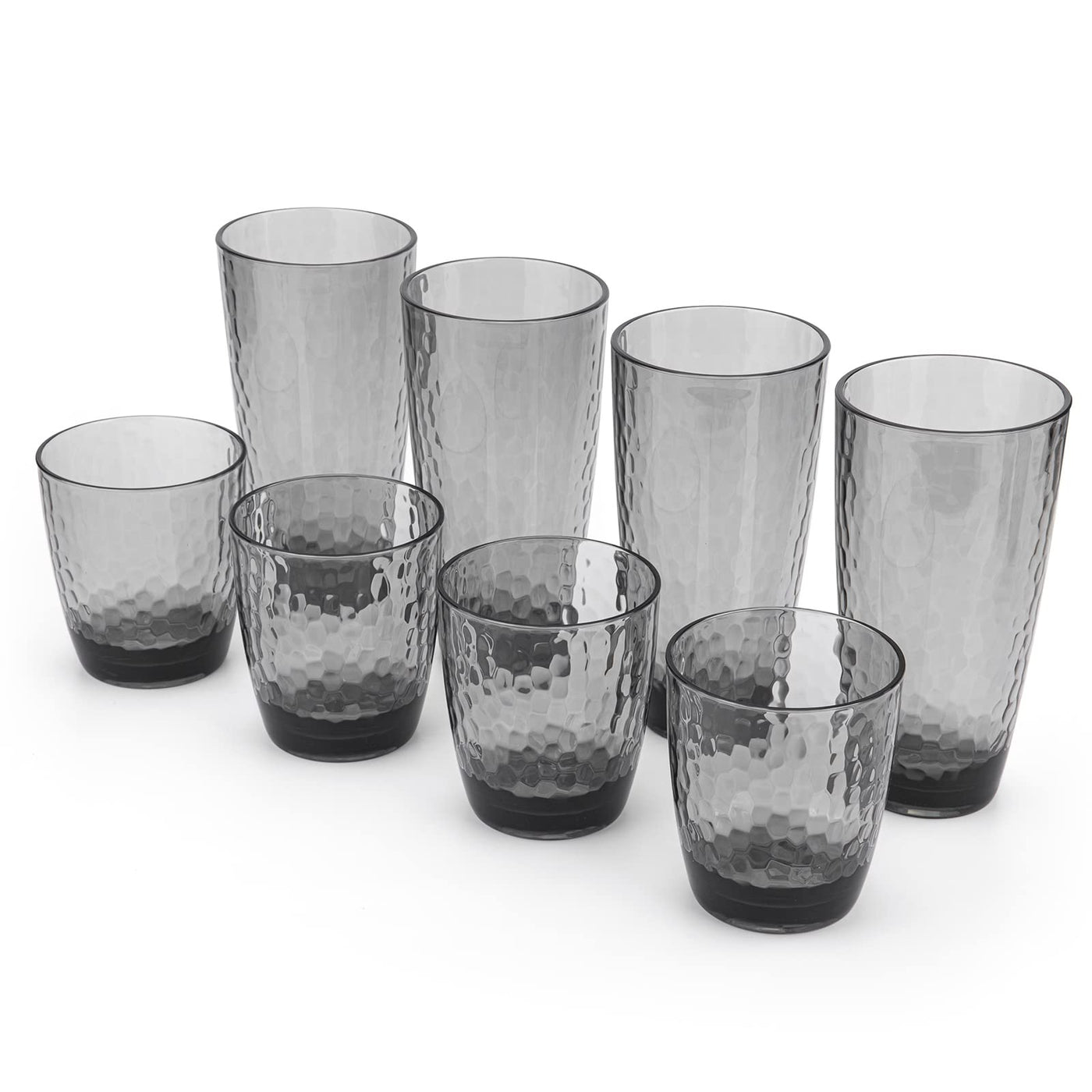 Koxin-Karlu Hammered 15-Ounce And 26-Ounce Plastic Tumbler Acrylic Glasses, Set Of 8 Smoky Grey