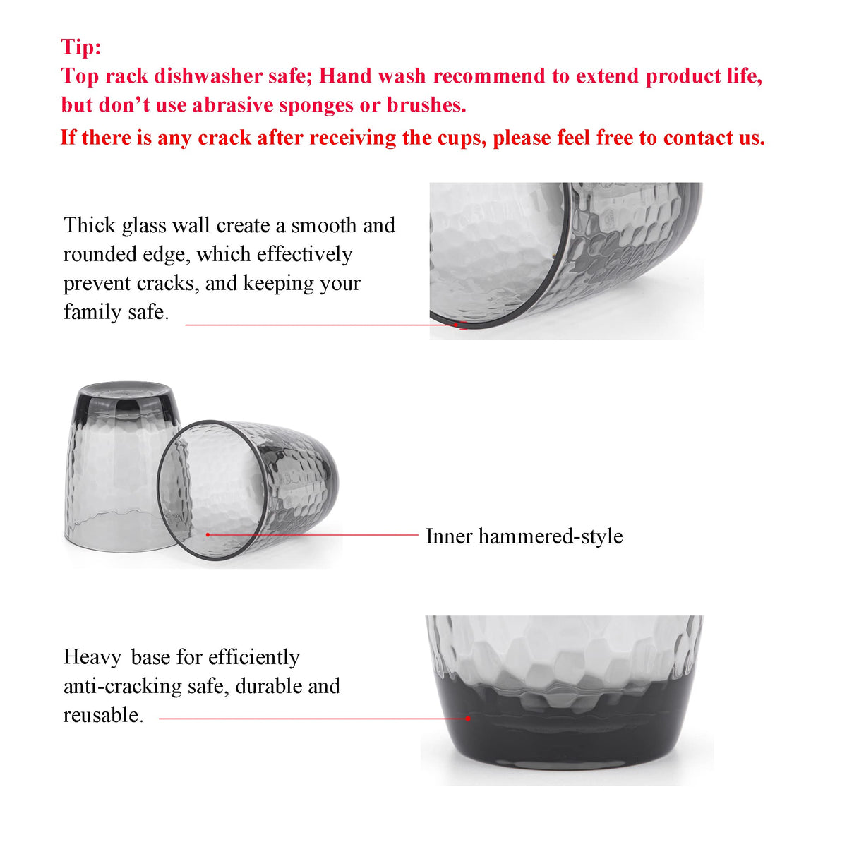 • Q: Can these tumblers be used for outdoor events? A: Yes, the hammered-style tumblers are perfect for outdoor cocktail parties and entertaining.