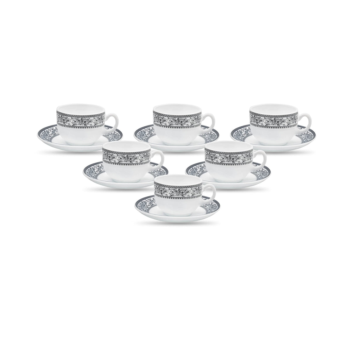 Laopala Diva, Sovrana Collection, Opal Glass Cup & Saucer Set 12 Pcs, Persian Grey, White