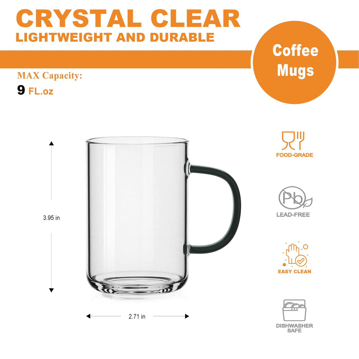 Luxu Glass Coffee Mugs Set Of 4,Borosilicate Glass Coffee Cups 9 Fl.Oz,Lead-Free Drinking Glasses,Premium Tea Cups With Dark Gre