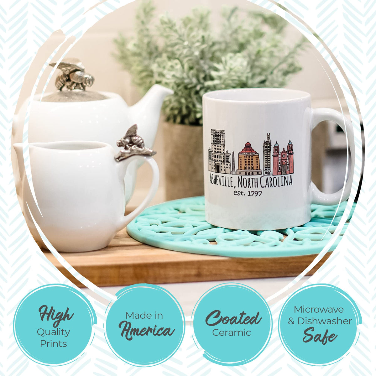 - Q: How should I care for this ceramic mug? A: You can care for this ceramic mug by washing it in the dishwasher or hand-washing it with mild soap and water.