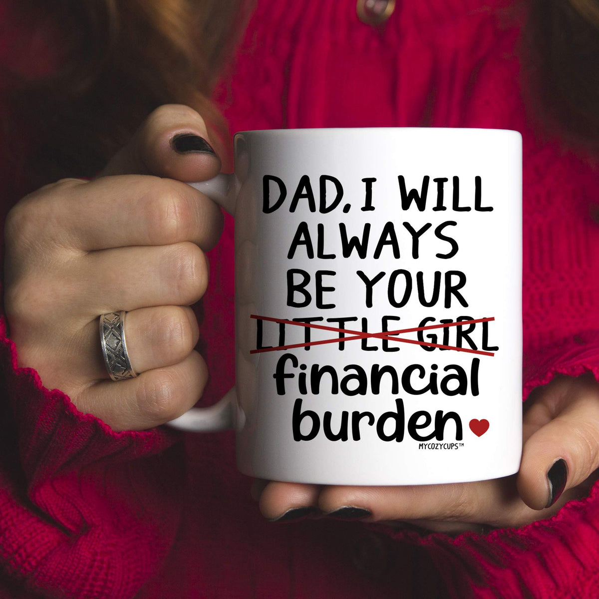 MyCozyCups Father's Day Mug For Dad From Daughter - I Will Always Be Your Little Girl Financial Burden Coffee Mug - Cute Funny U