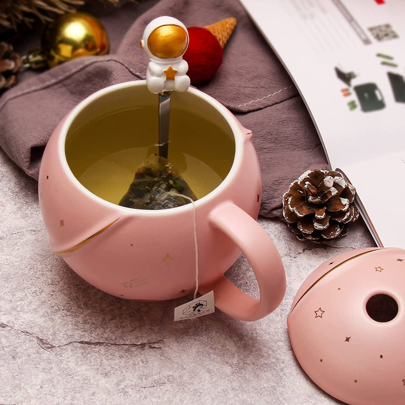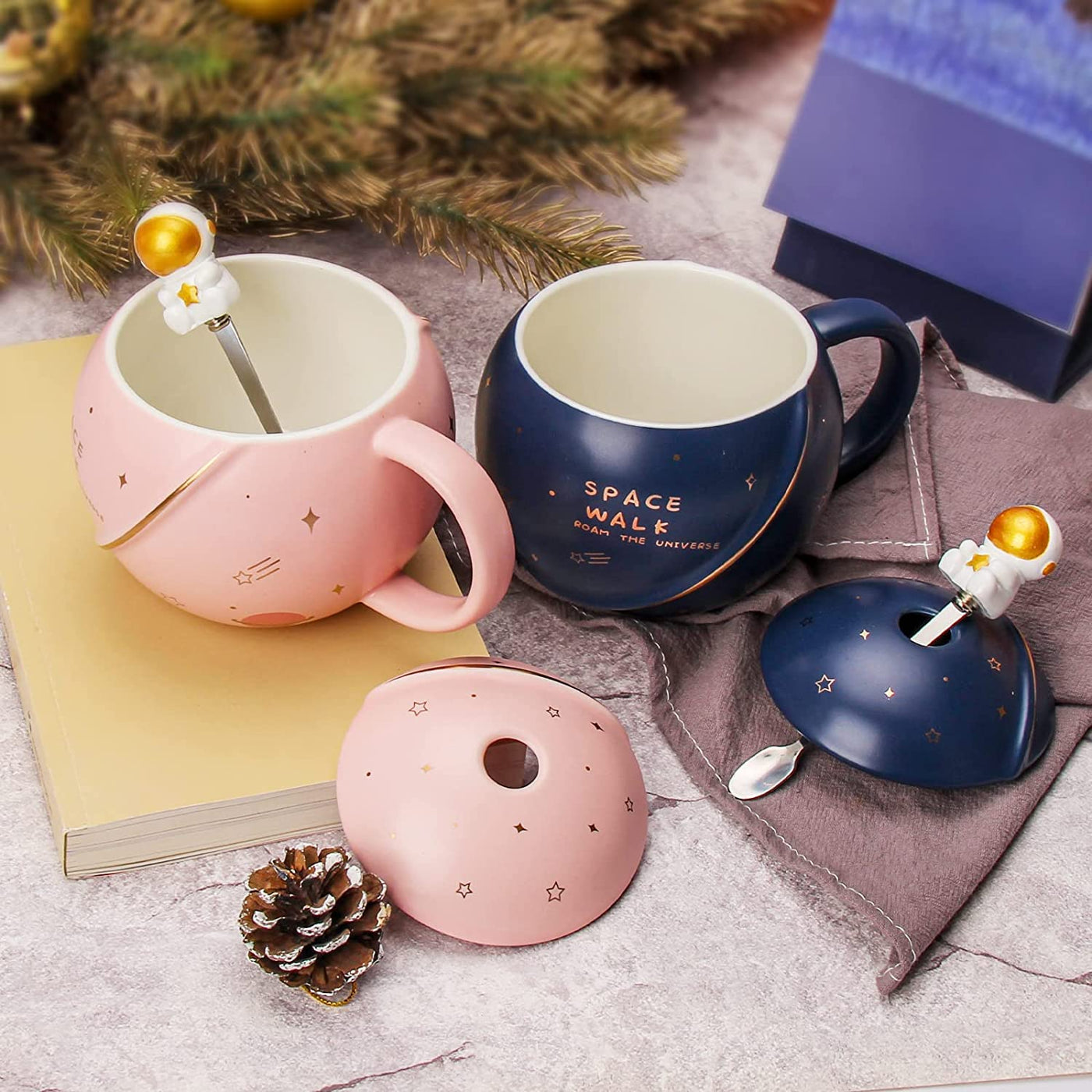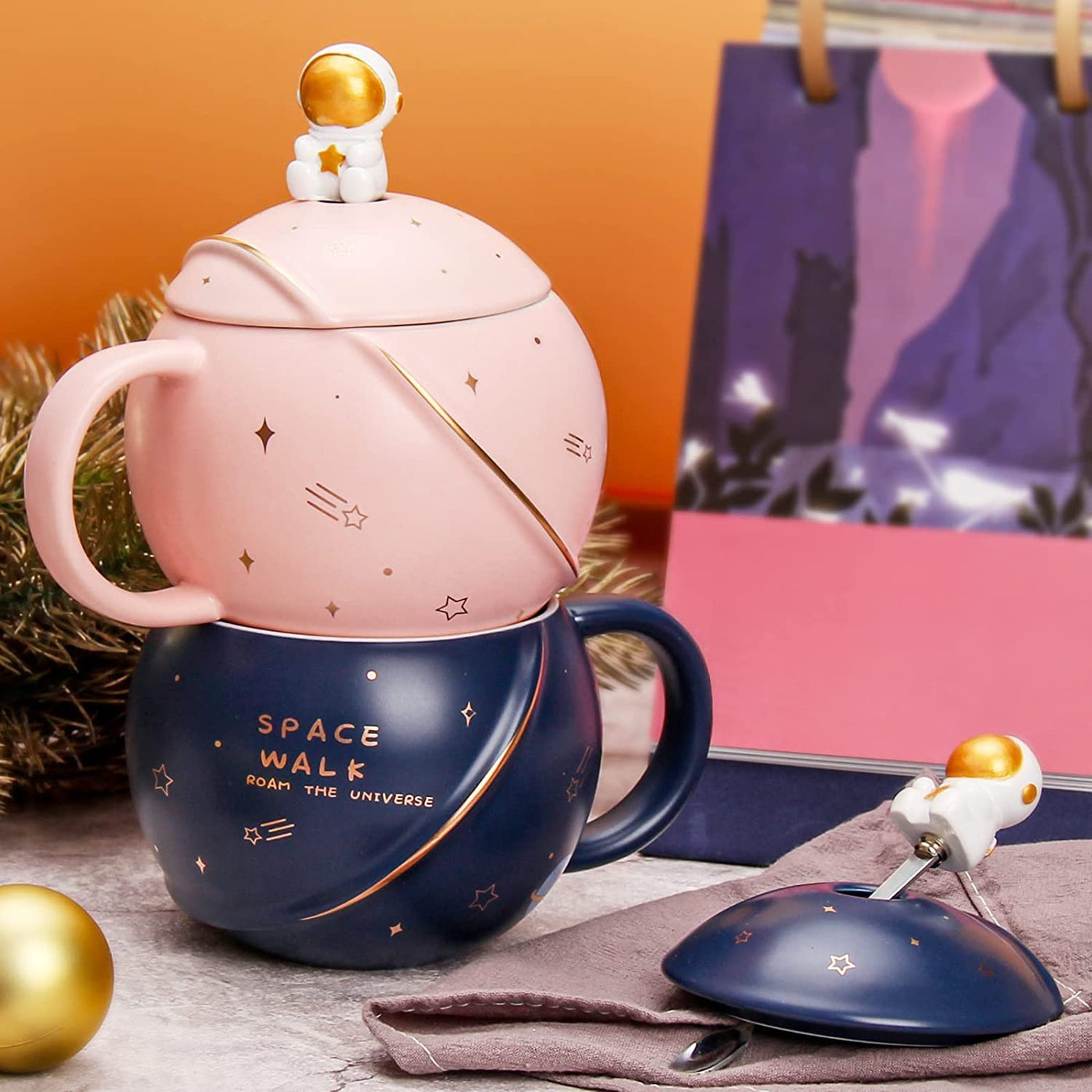 Parssufy Coffee Mug Gift Items 3D Creative Astronaut Universe Planet Coffee Mug With Lid Spoon Ceramic Coffee Mugs For Birthday