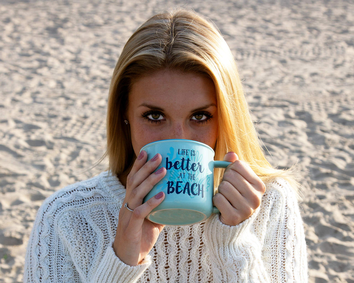 Pavilion Gift Company Large 17 Oz Stoneware Coffee Cup Mug Life Is Better At The Beach, 1 Count (Pack Of 1), Blue
