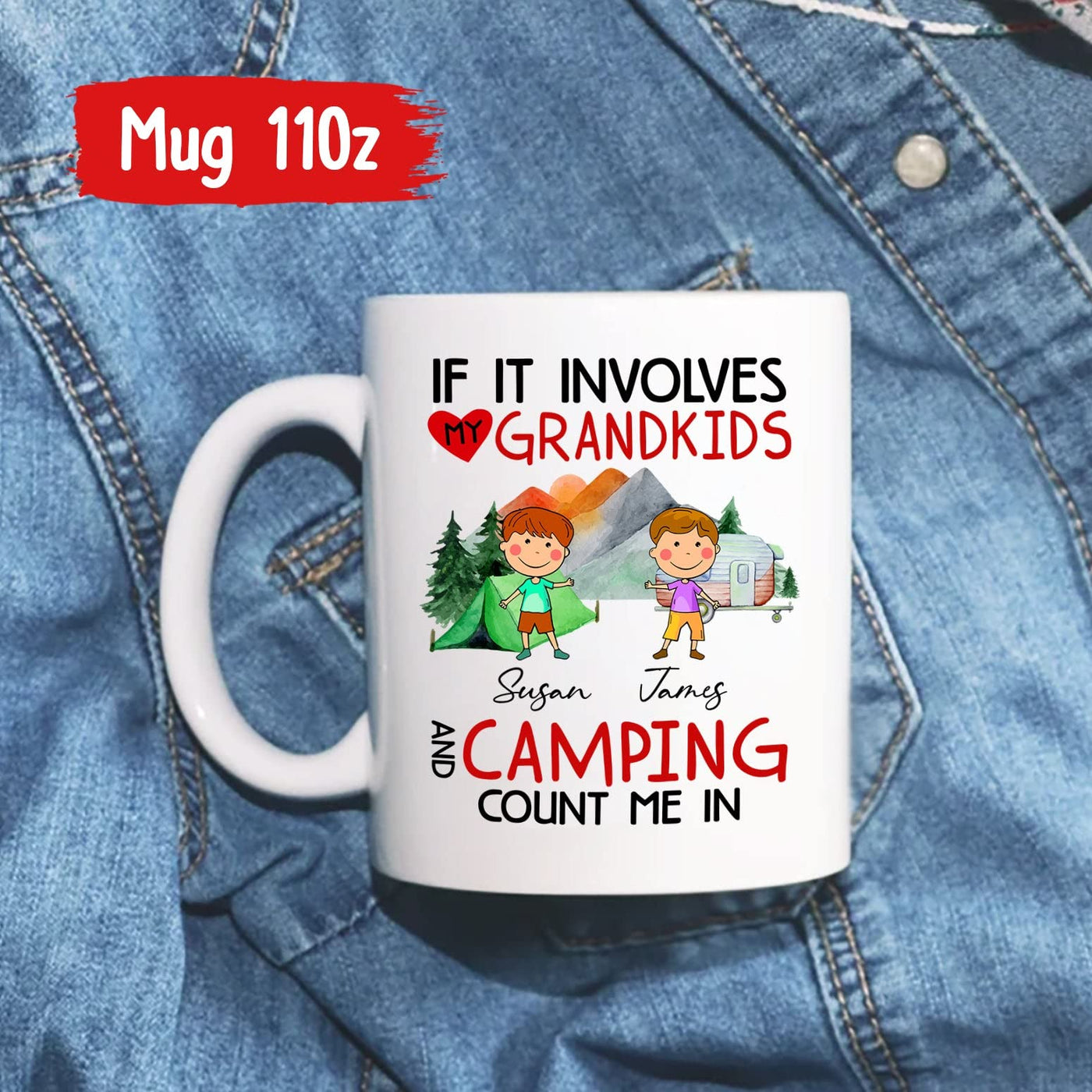 Personalized Camping Gifts, If It Involves My Grandkids And Camping Count Me In Mug, Custom Grandkids Names Mug, Grandpa Mug, Gr