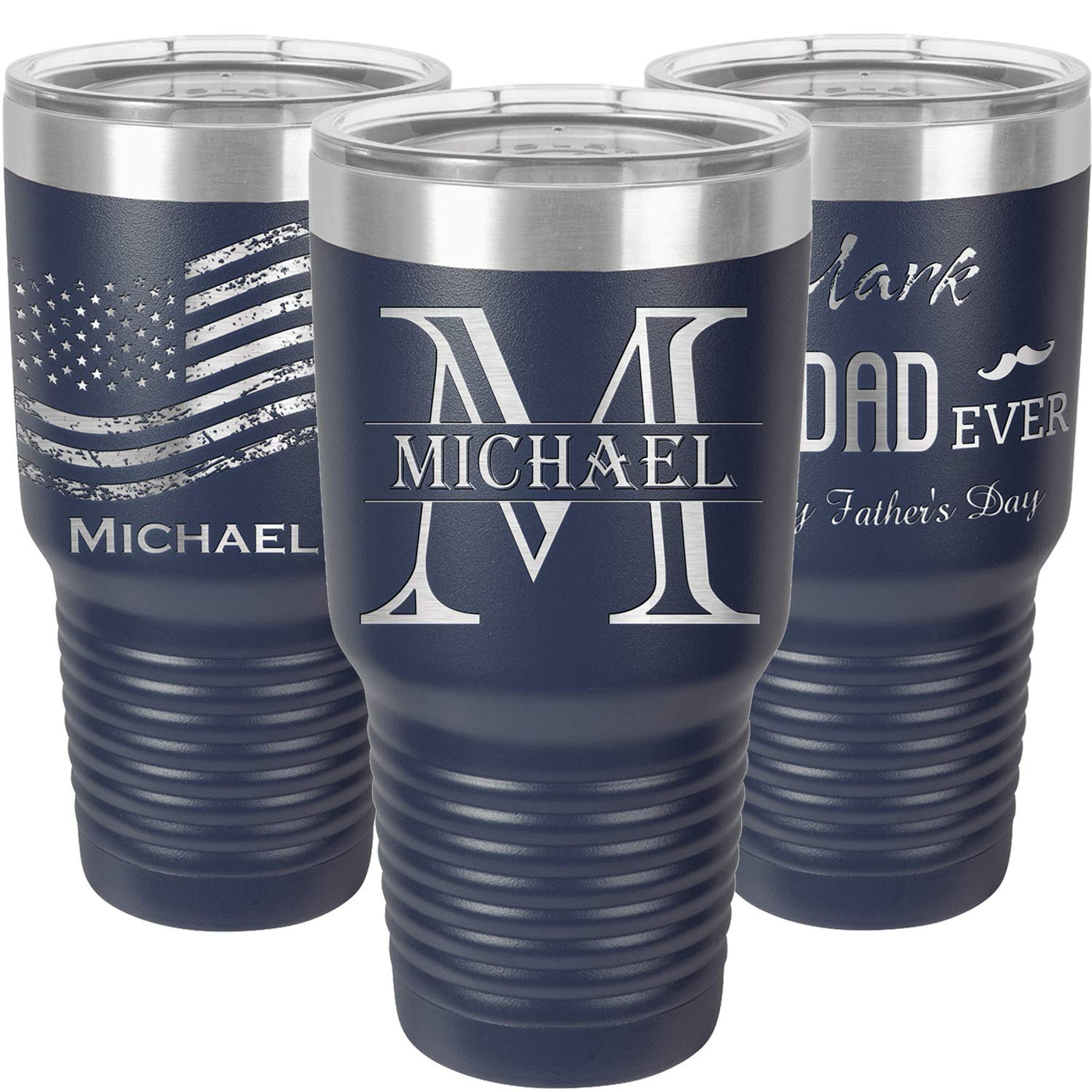 Personalized Tumblers 30oz with Lids and Straws Your Name or Text Engraved in USA Customized Cups Stainless Steel Vacuum Insulated Coffee Mugs Father's Day Gifts for Dad by iProductsUS (Navy Blue)