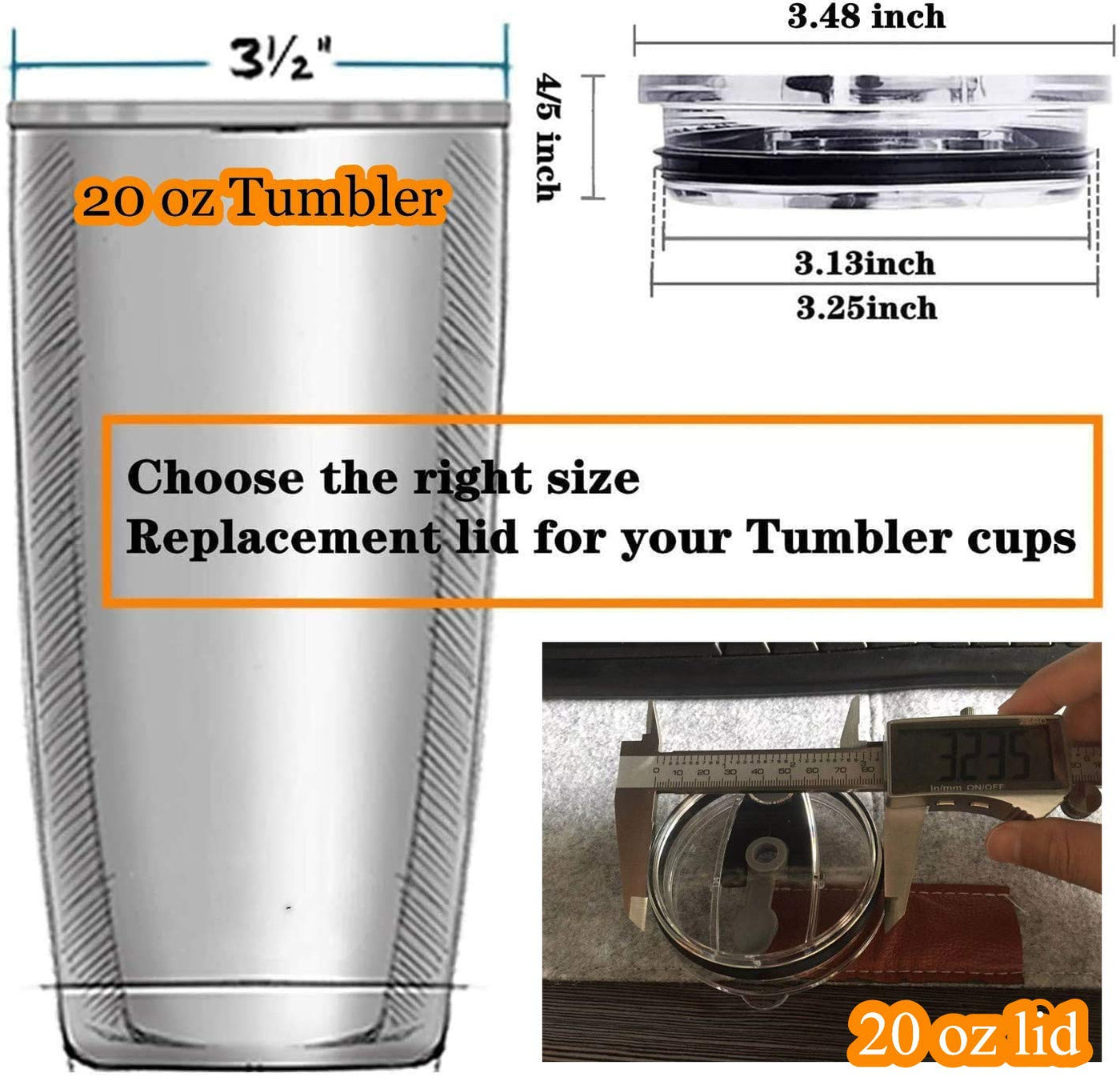 - Q: How can I ensure the lid fits my tumbler? A: To ensure a proper fit, measure the diameter of your tumbler before purchasing. This lid is designed specifically for 20 oz tumblers.
