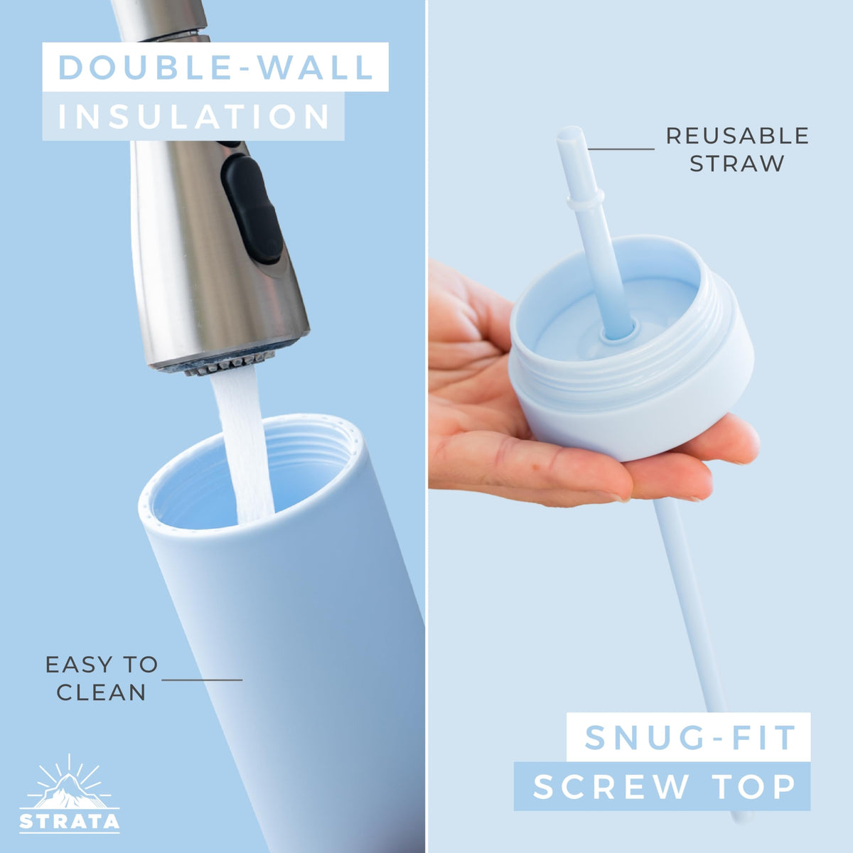• Q: How do I clean the STRATA Cups? A: The cups are handwash only and come with a bonus straw cleaner for easy cleaning.
