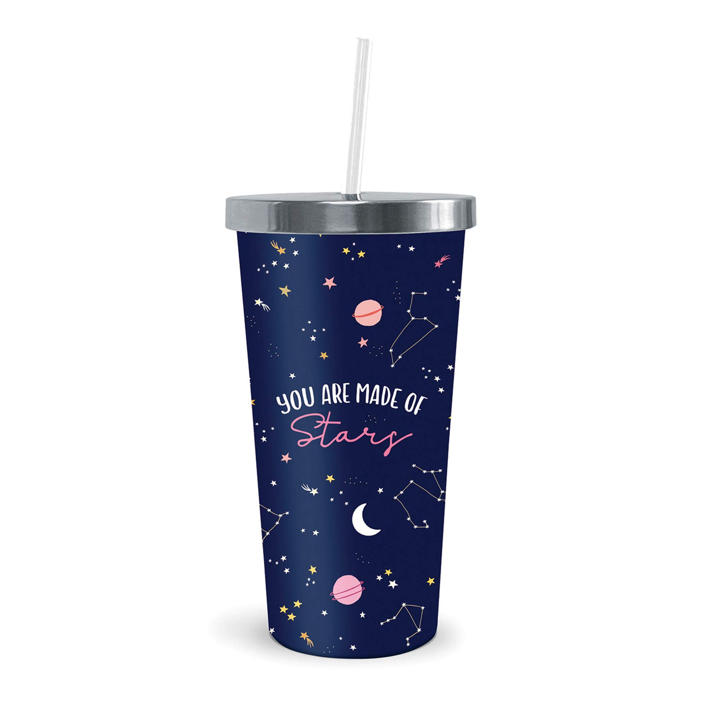 Studio Oh! Insulated Stainless Steel Water Tumbler With Straw You Are Made Of Stars - 17-Ounce Travel-Friendly Thermal Cup With