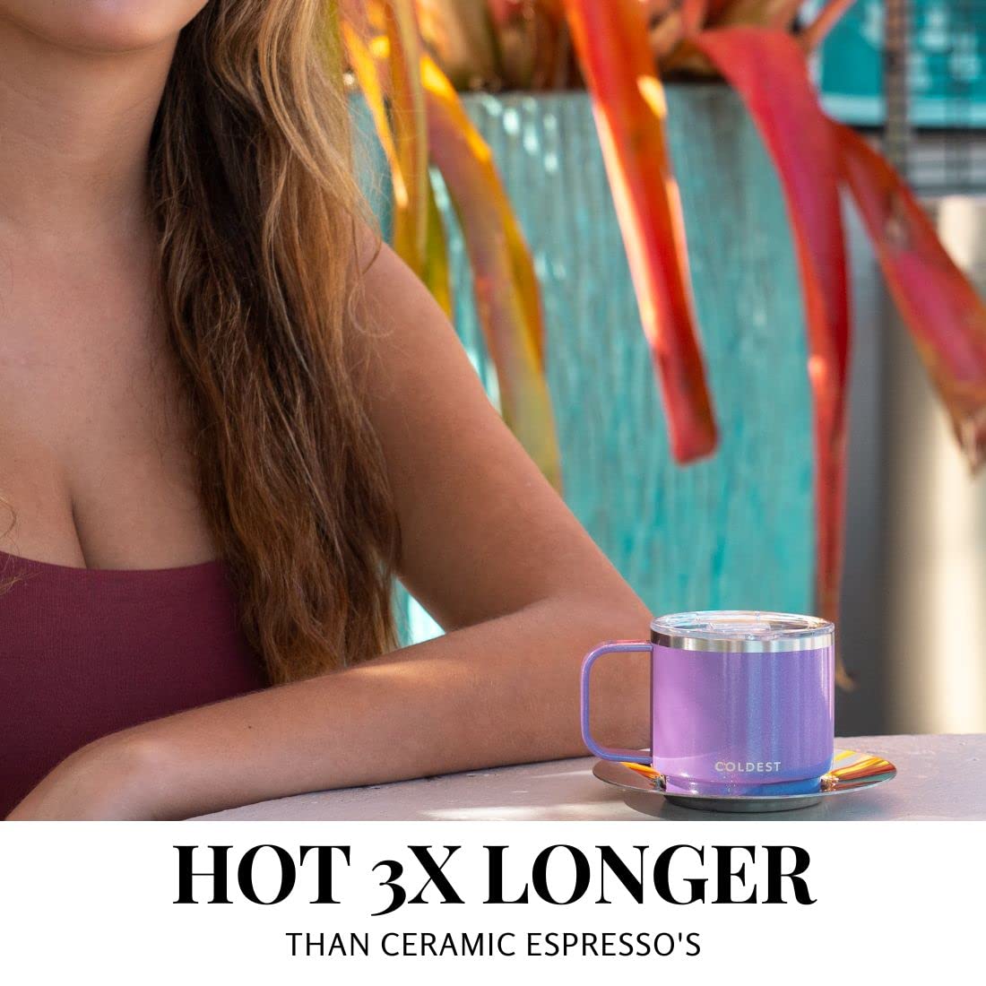 The Coldest Water Stackable Insulated Espresso Cup With Saucer - Insulated Triple Wall Stainless Steel Travel Double Shot Espres