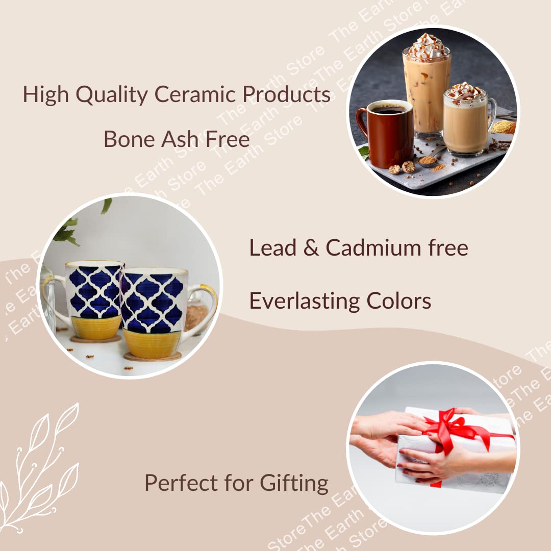 The Earth Store Moroccan Yellow Blue Coffee Mug Set of 2 Ceramic Tea Mugs, Milk Mugs,Microwave Safe Coffee Mugs,Ceramic Tea Cups