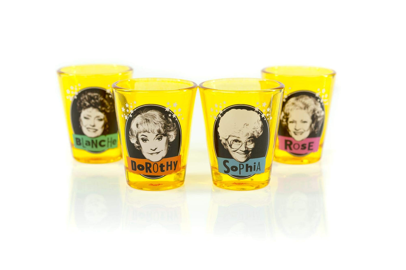 JUST FUNKY Golden Girls Shot Glass Collectible Set - 4 Count, 2 oz Glass, Yellow