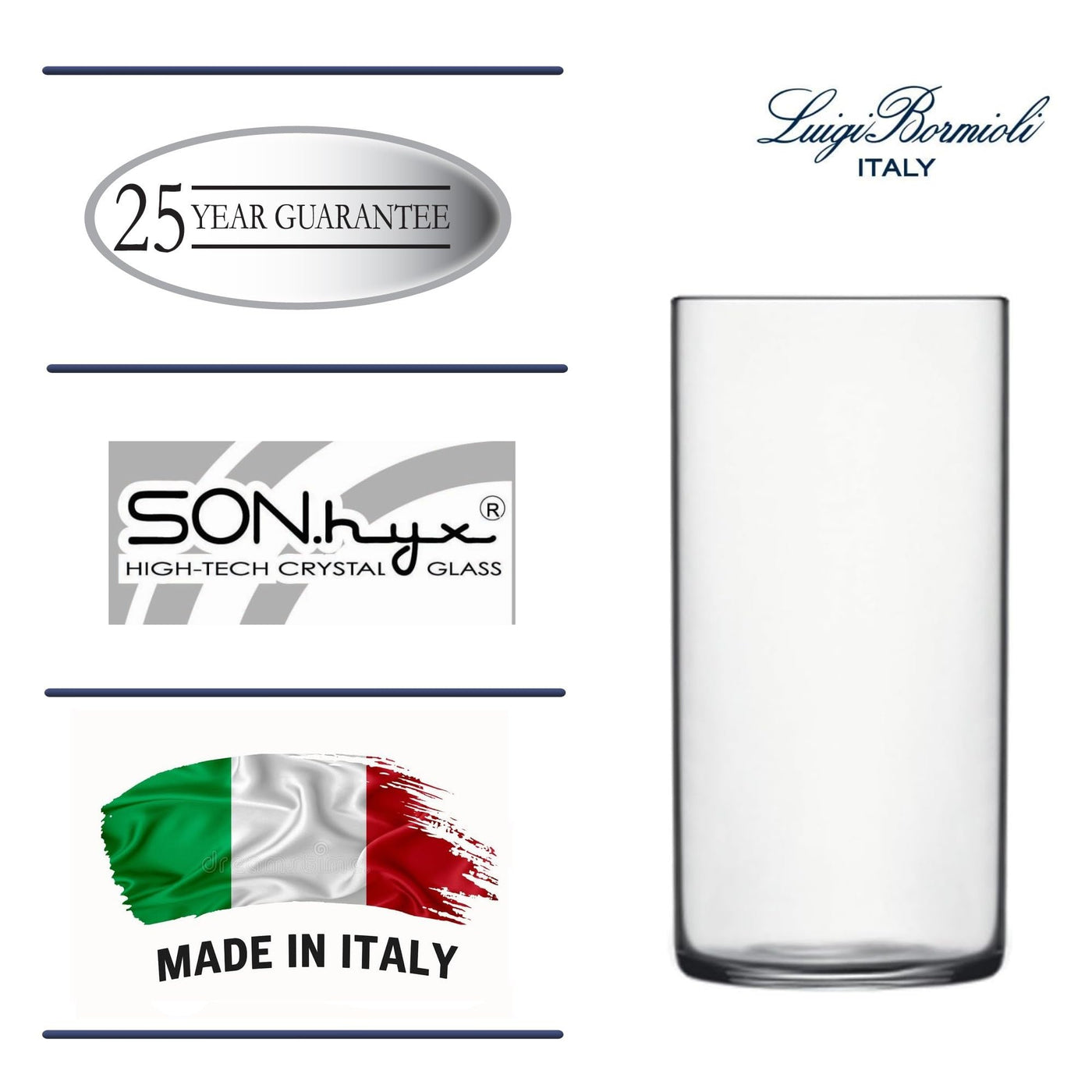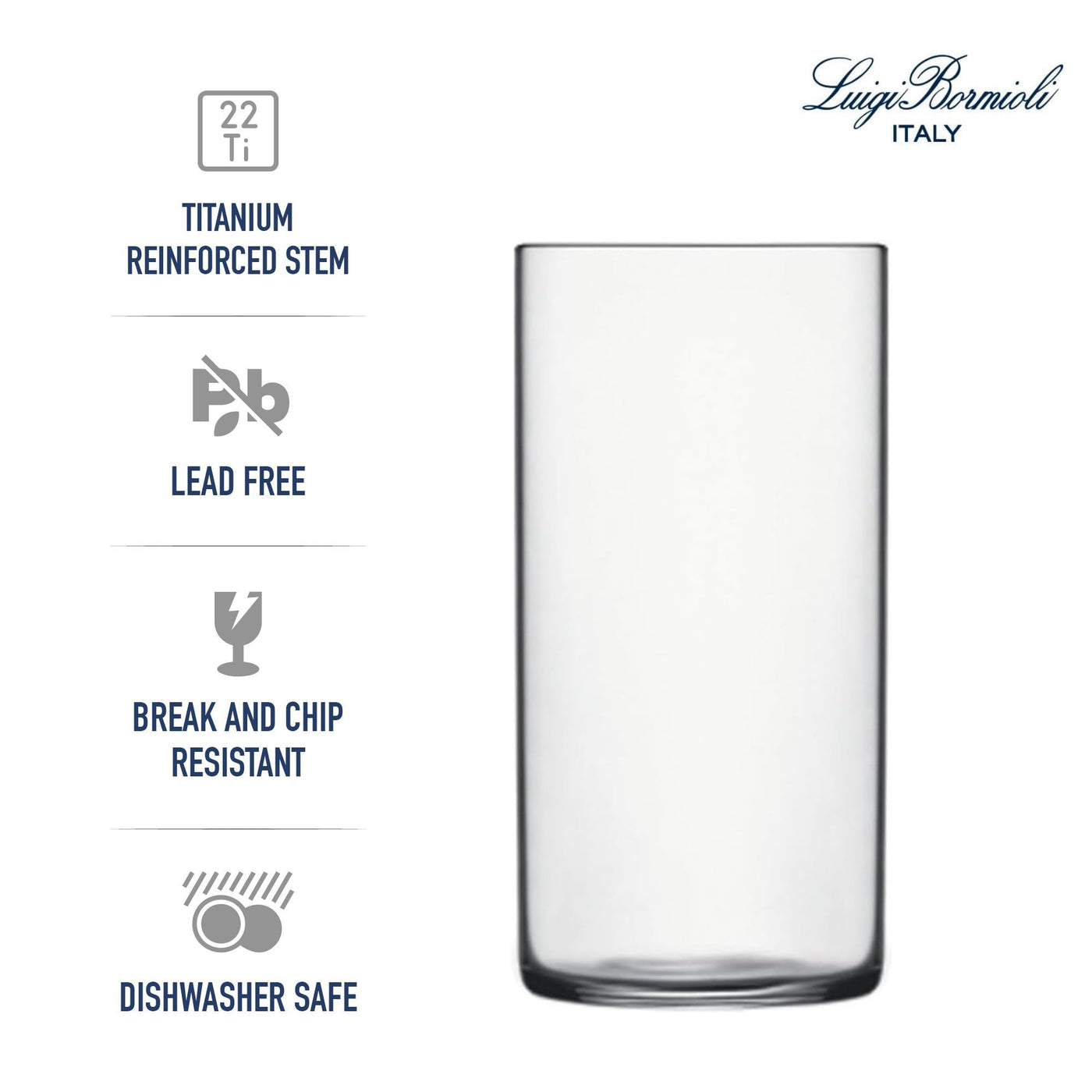 • Q: What material are the Luigi Bormioli Top Class Highball Glasses made from? A: The Luigi Bormioli Top Class Highball Glasses are crafted from Son.hyx lead-free crystal, known for its exceptional clarity and brilliance.