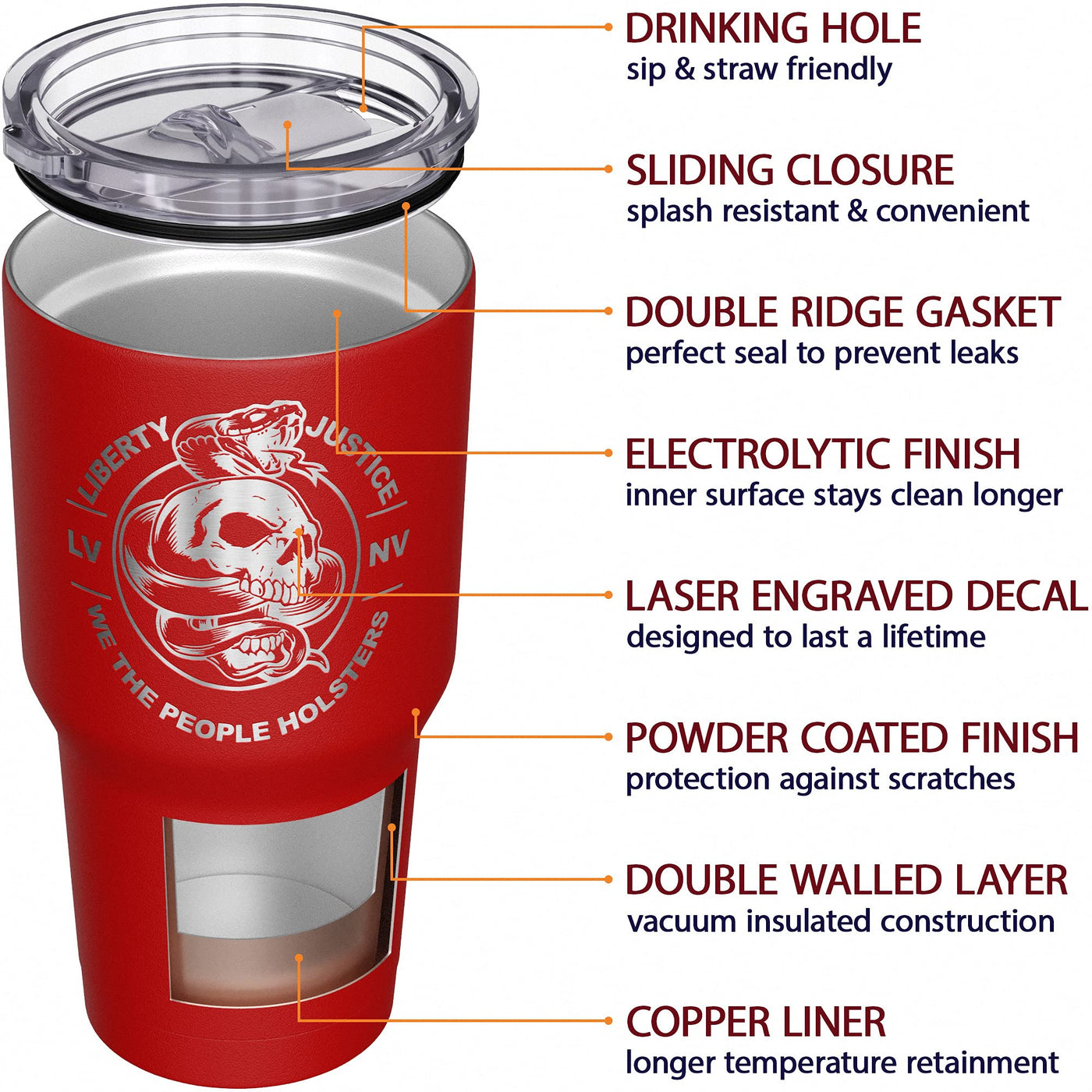 - Q: What is the capacity of the We The People Holsters tumbler? A: The We The People Holsters tumbler has a capacity of 30 fluid ounces.