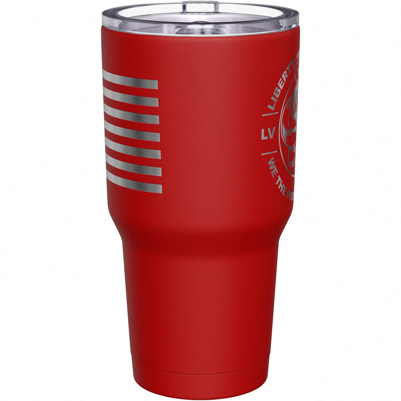 We The People Holsters - Liberty And Justice - Coffee Tumbler - American Flag Coffee Travel Mug - Engraved Tumbler - Double Insulated Tumbler - 30 oz