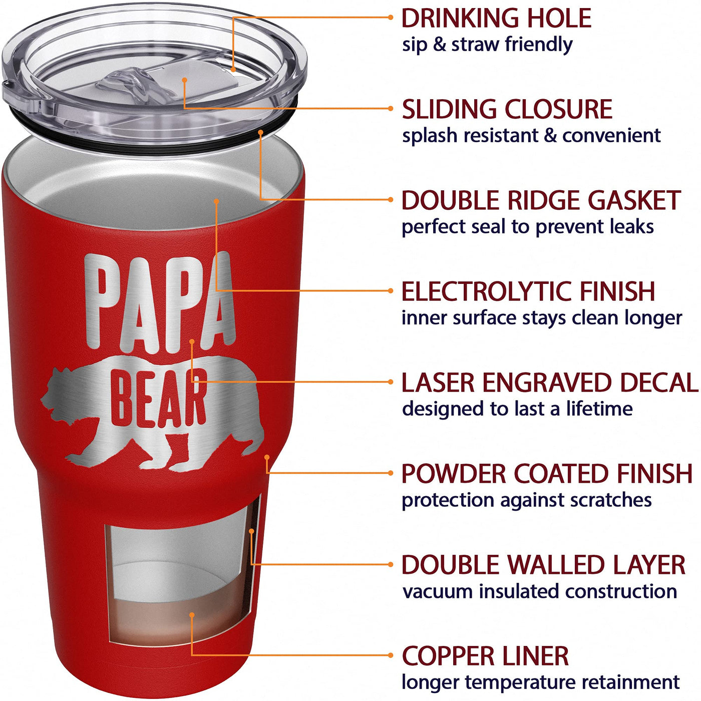 We The People Holsters - Papa Bear - Coffee Tumbler - American Flag Coffee Travel Mug - Engraved Tumbler - Double Insulated Tumbler - 30 oz