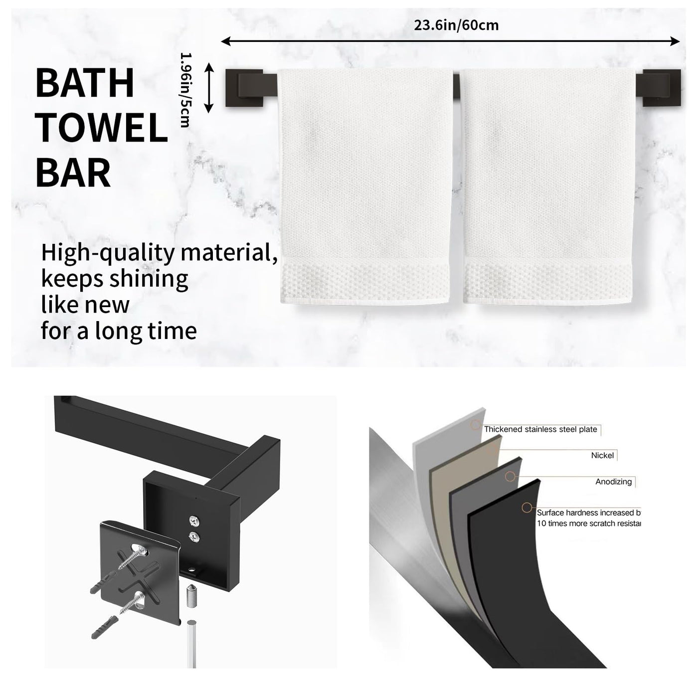 10-Pieces Matte Black Bathroom Accessories Set, 23.6 Inch Bath Towel Bar Set, Sus 304 Stainless Steel Bathroom Hardware Set, Tow
