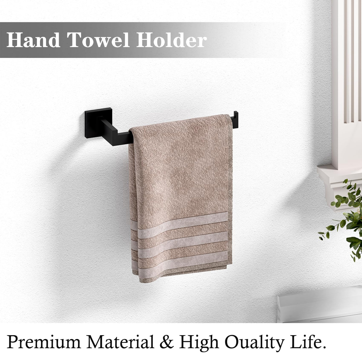 - Q: What does the 12-piece matte black bathroom hardware set include? A: The set includes 2x16 inch bath towel bars, 2x hand towel holders, 2x towel rings, 2x toilet paper rods, and 4 hooks.