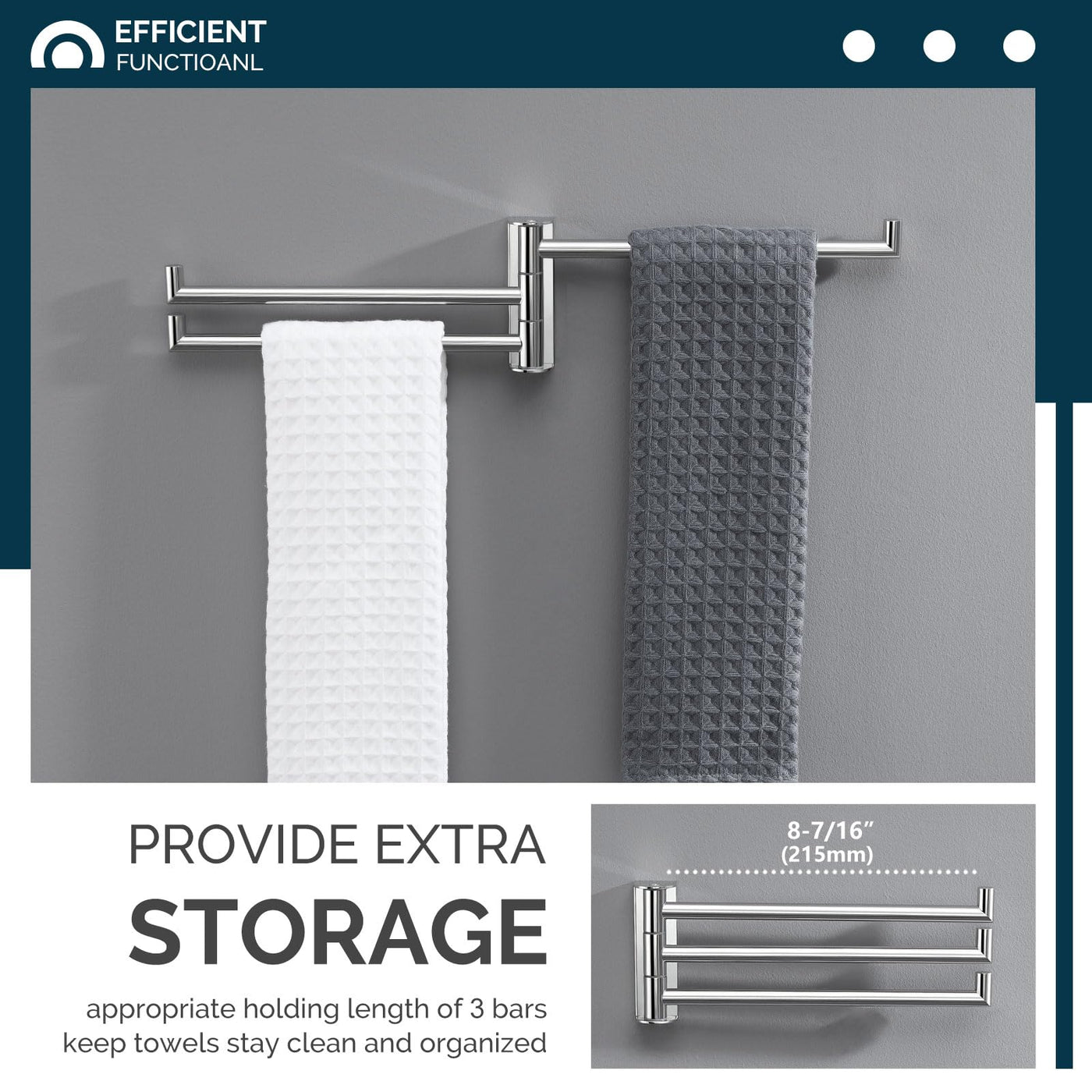 Angle Simple Swivel Hand Towel Rack 3 Bars Polished Chrome, 304 Stainless Steel Bathroom Towel Holder Wall Mount