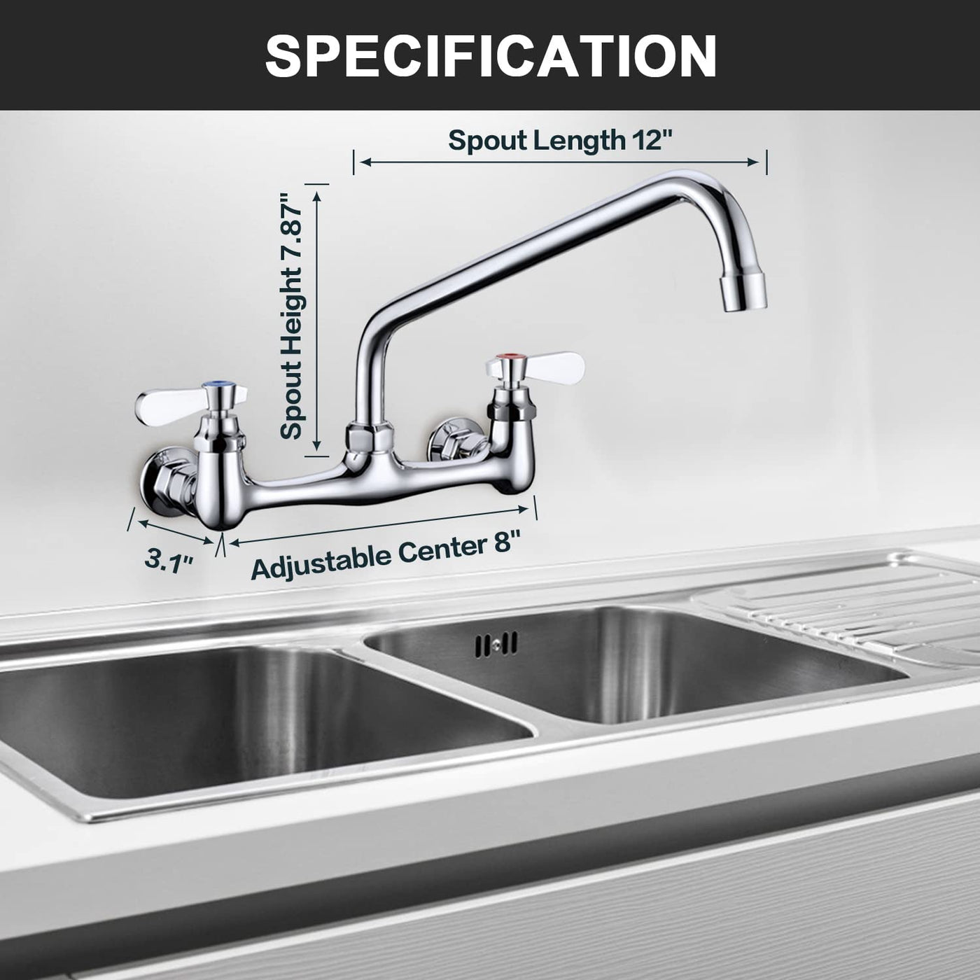 Favorpo Wall Mount Faucet 8 Inches Center Commercial Kitchen Faucet 12 Inches Swivel Spout Wall-Mount Utility Sink Faucets 2 Handle Wall Mounted Faucets for Kitchen Laundry Room Restaurant