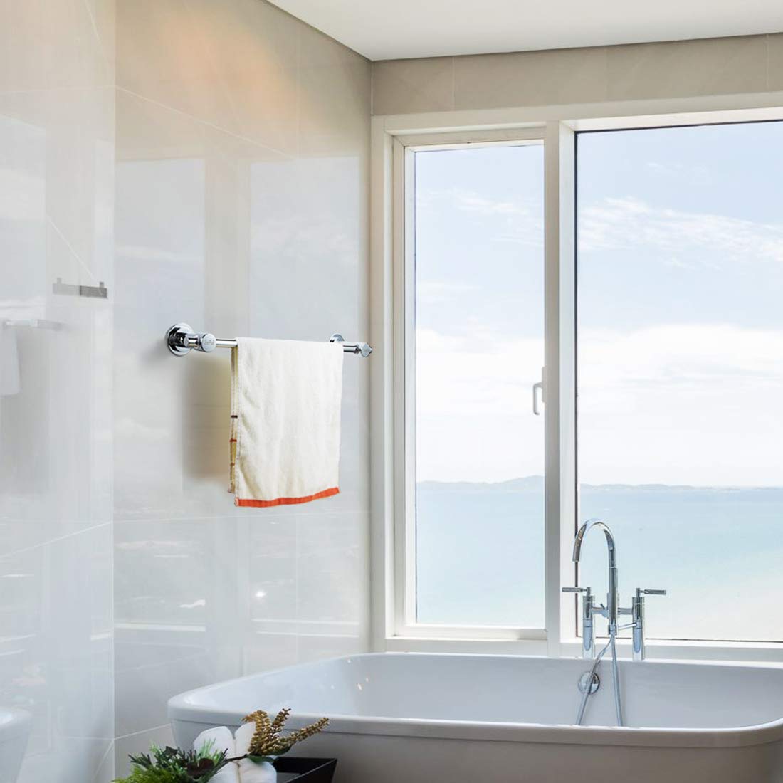 • Q: How do I properly install the suction cup towel bar? A: To install, clean and dry the surface, apply moisture to the suction cup, press the towel bar onto the surface to push out air, and slide the suction lever down to activate the suction.