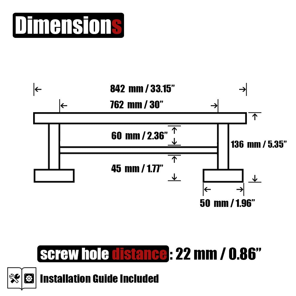 - Q: What is the usable length of the towel bar? A: The usable double bar length is 30 inches, while the total length of the towel bar is approximately 33 inches.
