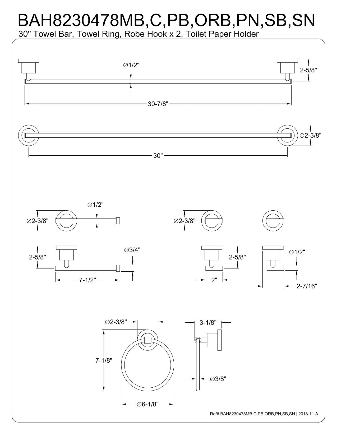 This All Inclusive Set Of Bathroom Accessories Features Intricate Detailing For A Luxurious And Astonishing Style. Any Bathroom Will Be Given An Added Boost Of Opulence From These Coordinated Pieces. One Towel Bar, Towel Ring, Two Robe Hooks, And A Toilet Paper Holder Are Included For All Of Your Hanging Storage Needs. Available In Multiple, Durable Finishes.