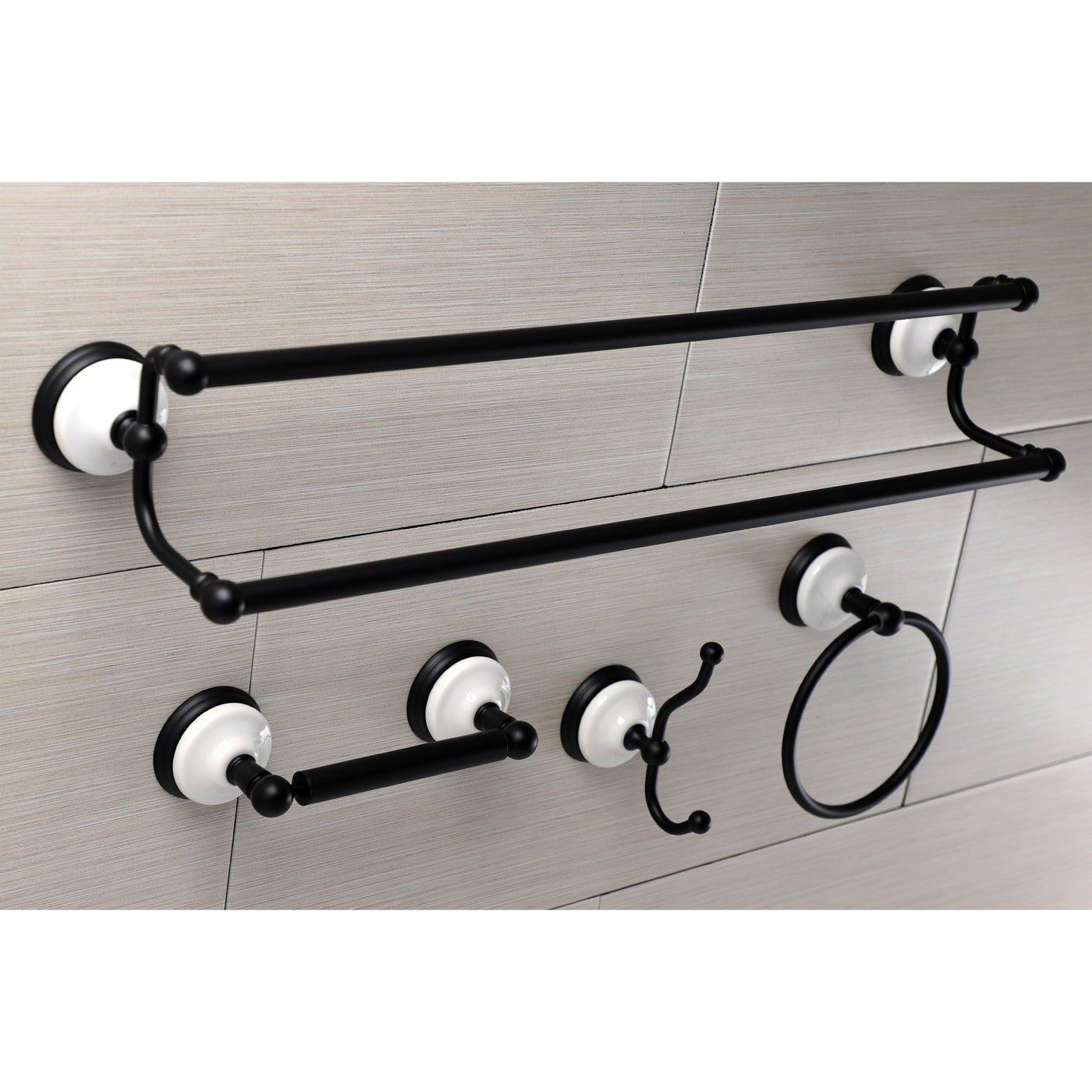 Kingston Brass BAK1113478MB Victorian 4-Pieces Dual Towel Bar Bathroom Hardware Set Matte Black