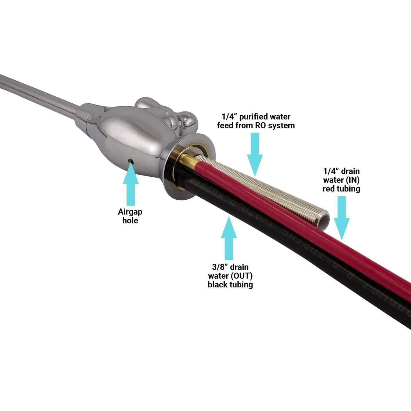 - Q: Is the faucet suitable for replacing existing air gap faucets? A: Yes, this faucet is ideal for replacing existing air gap faucets that use standard 1/4 inch OD and 3/8 inch OD drain lines.