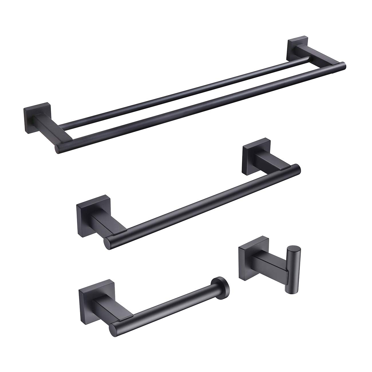 Miyili Matte Black 4-Piece Bathroom Hardware Kit Set Stainless Steel Wall Mount - Includes Double Towel Bar, Hand Towel Rack, To