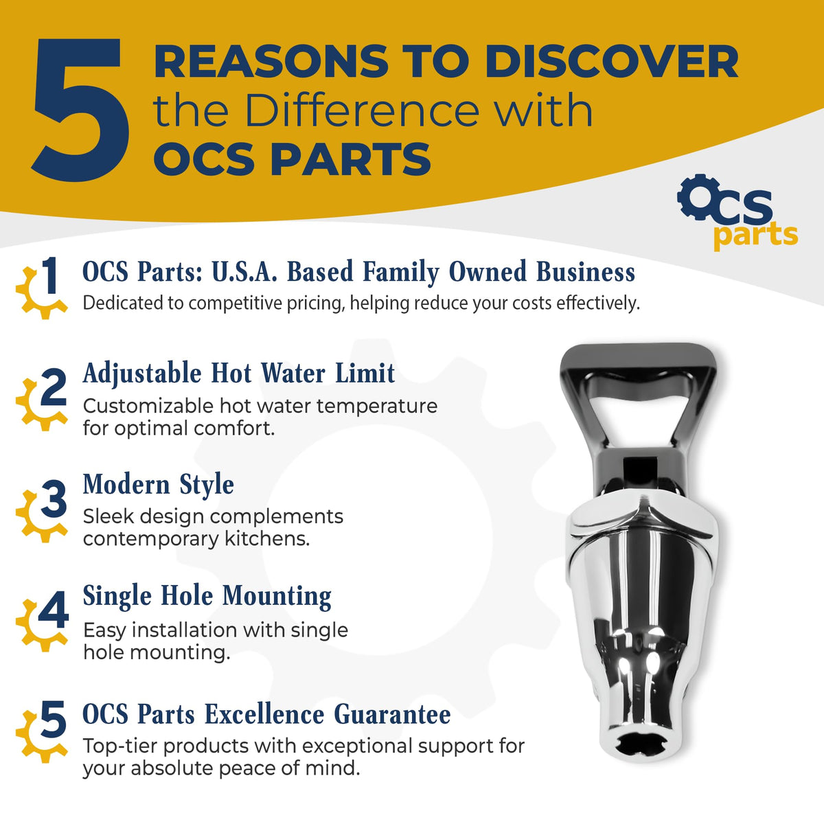 • Q: Can I adjust the water temperature with this faucet? A: Yes, the OCS Parts Tea Urn Faucet features an adjustable hot water limit, allowing you to customize the hot water temperature to your preference.