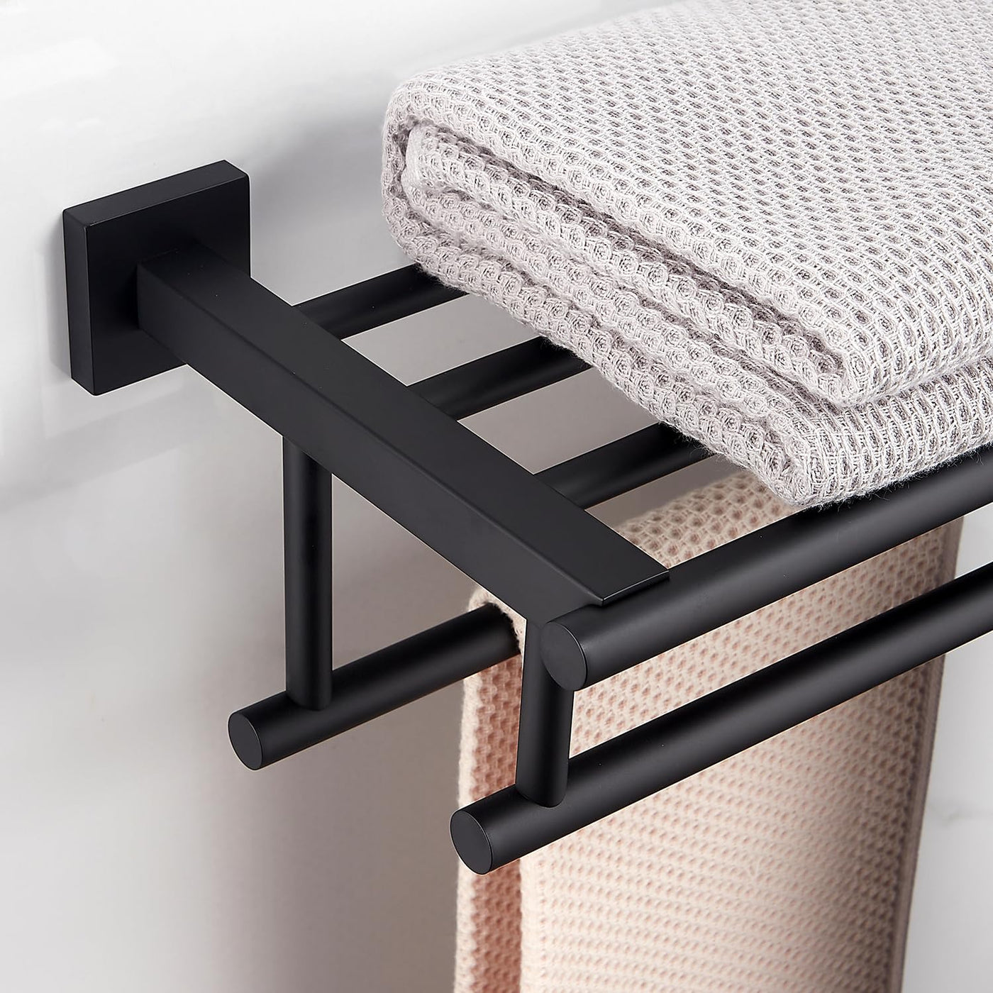 Rtcul Towel Rack For Bathroom 24 Inch Wall Mounted Towel Rack Matte Black Towel Shelf With Double Towel Bar Sus304 Stainless Ste