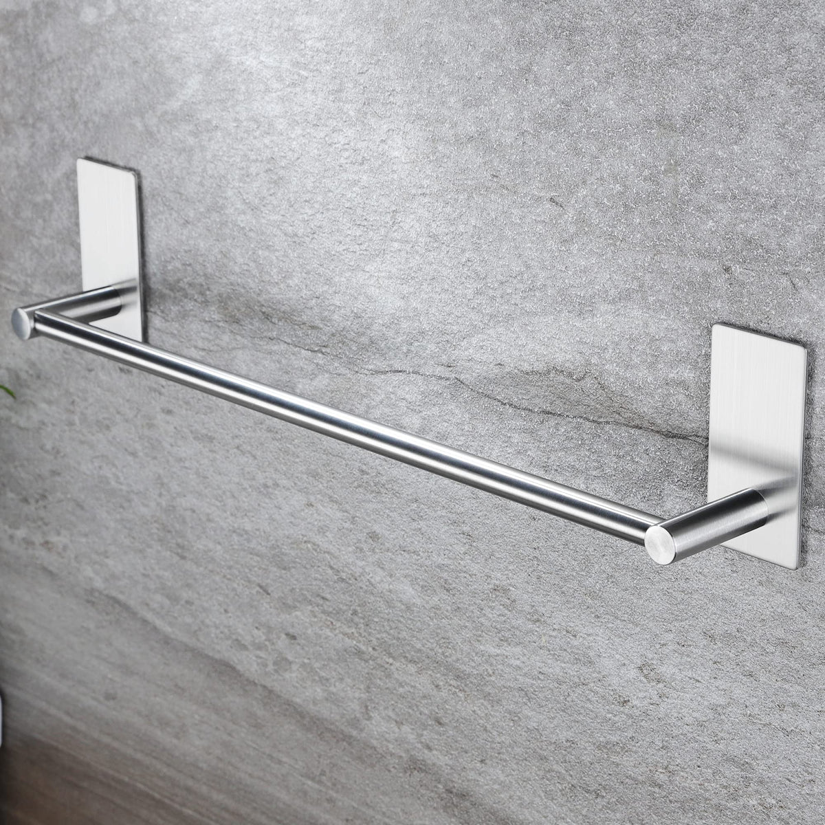 Taozun Self Adhesive 16-Inch Bathroom Towel Bar Brushed Sus 304 Stainless Steel Bath Wall Shelf Rack Hanging Towel Stick On Stic