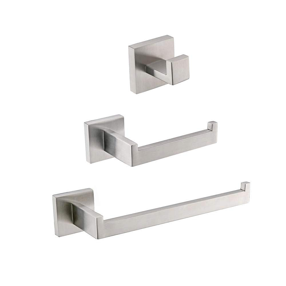 Turs 3-Piece Bathroom Accessory Set Sus 304 Stainless Steel Rustproof Toilet Paper Holder Towel Bar/Holder Robe Hook Wall Mount,