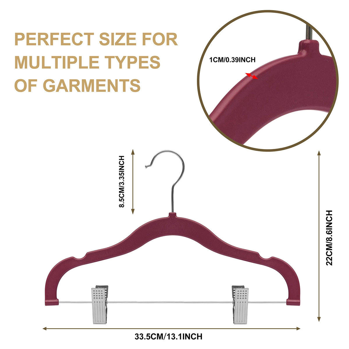 - Q: How do these hangers compare to velvet hangers? A: These plastic hangers are more practical than velvet hangers as they do not stick to clothing, making hanging up items faster and frustration-free.