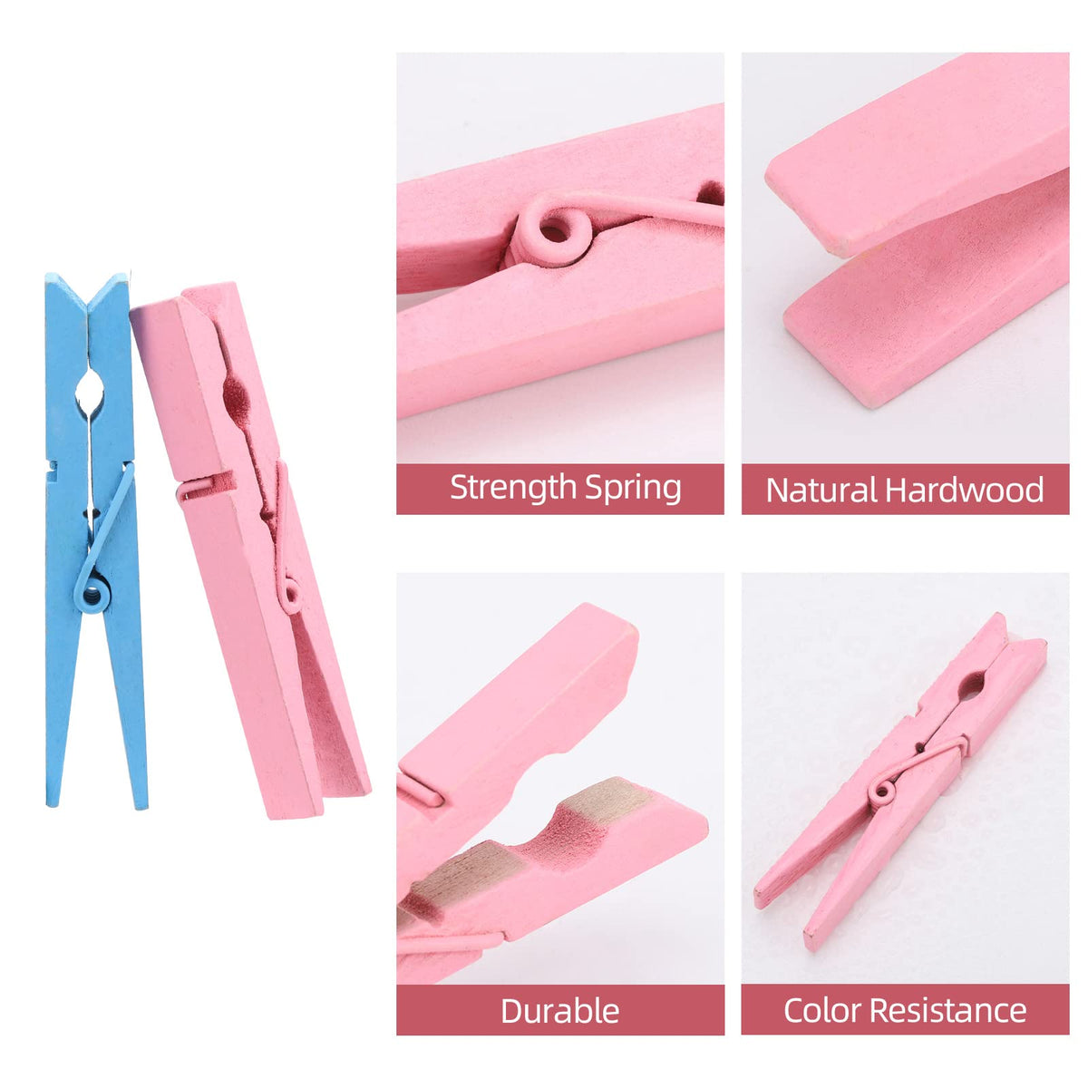 - Q: What materials are the clothespins made of? A: The clothespins are made of natural hard wood and feature heavy-duty metal springs for added durability.