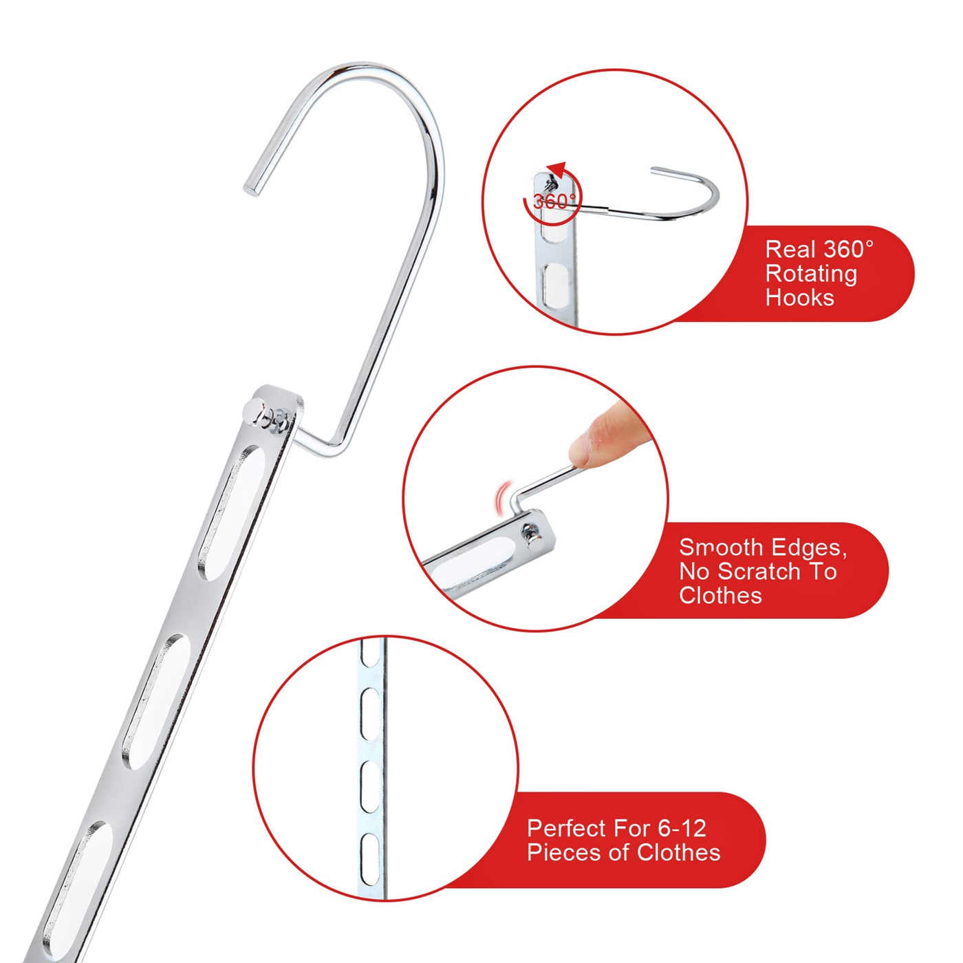 - Q: How many garments can each hanger hold? A: Each space-saving hanger can hold between 6 to 12 garments, depending on how they are arranged in your closet.