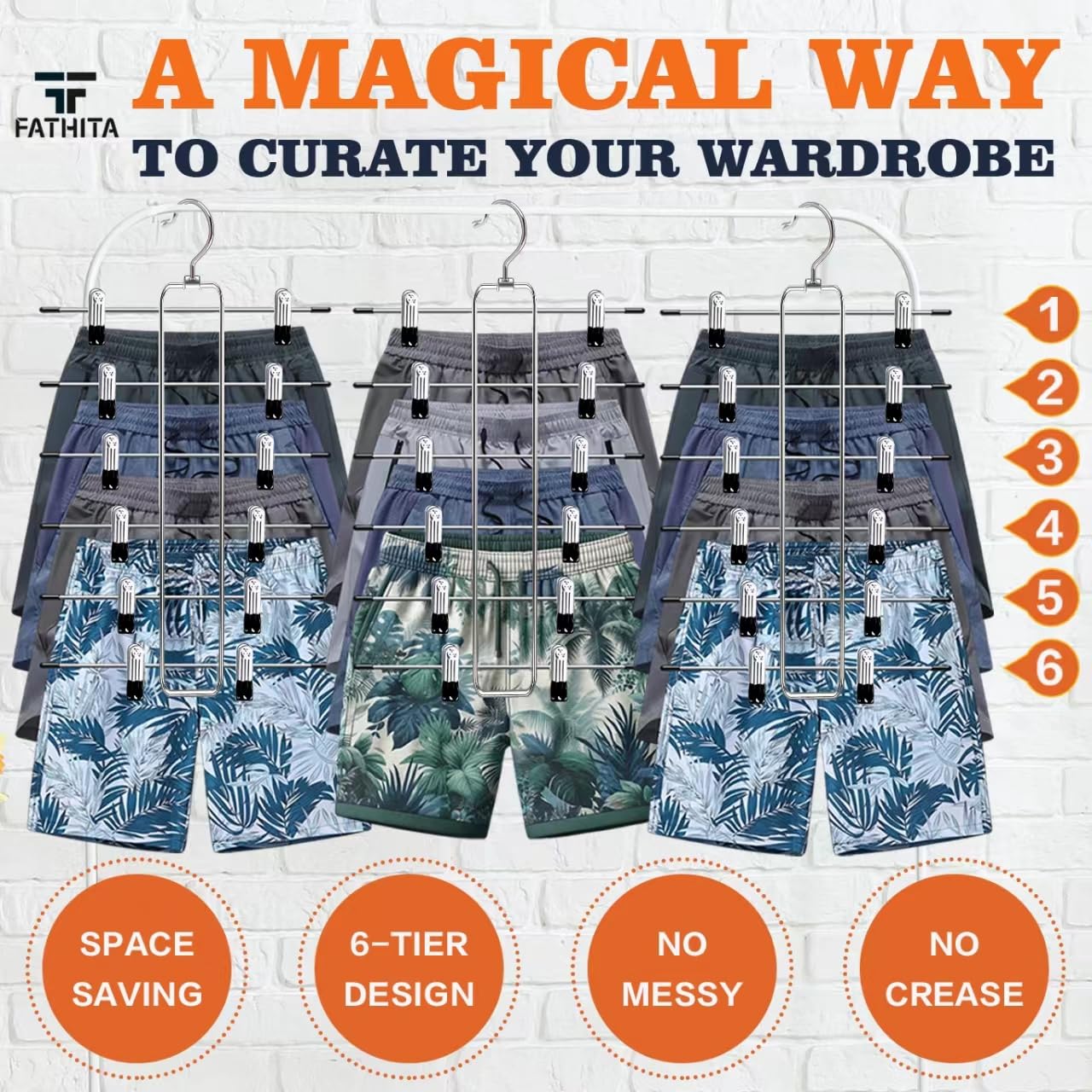 3 Pack Pants-Hangers-Space-Saving,6 Tier Skirt-Hangers With Clips For Closet-Organizers-And-Storage,Foldable Dorm-Room-Essential