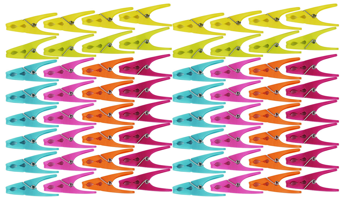 64 Plastic Clothespins W/ 6 Bright Colors - Clothes Pin, Laundry, Bag Clip, Chip Clip, Sealer, Ect.