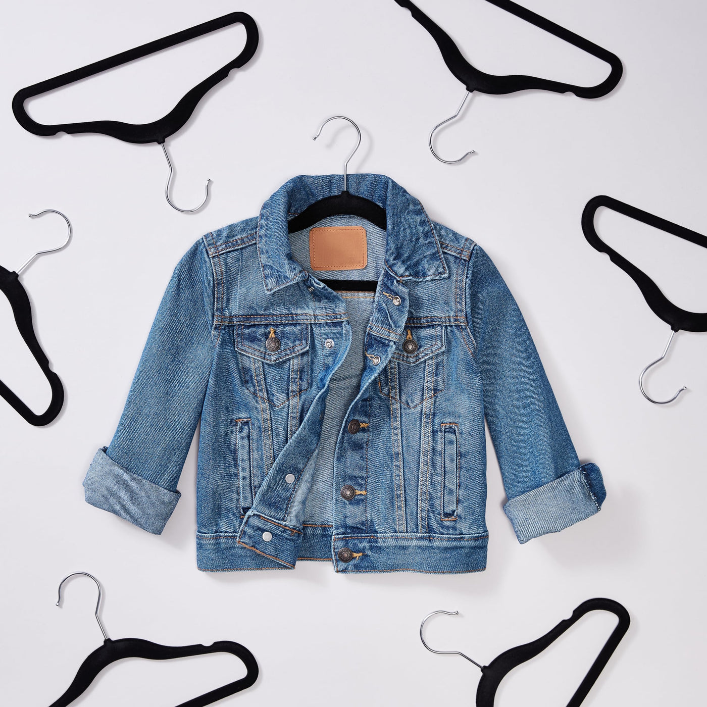 Amazon Basics Kids Velvet, Non-Slip Clothes Hangers For Infant And Toddler, 11.6 Inches (For Baby Clothes), Pack Of 50, Black