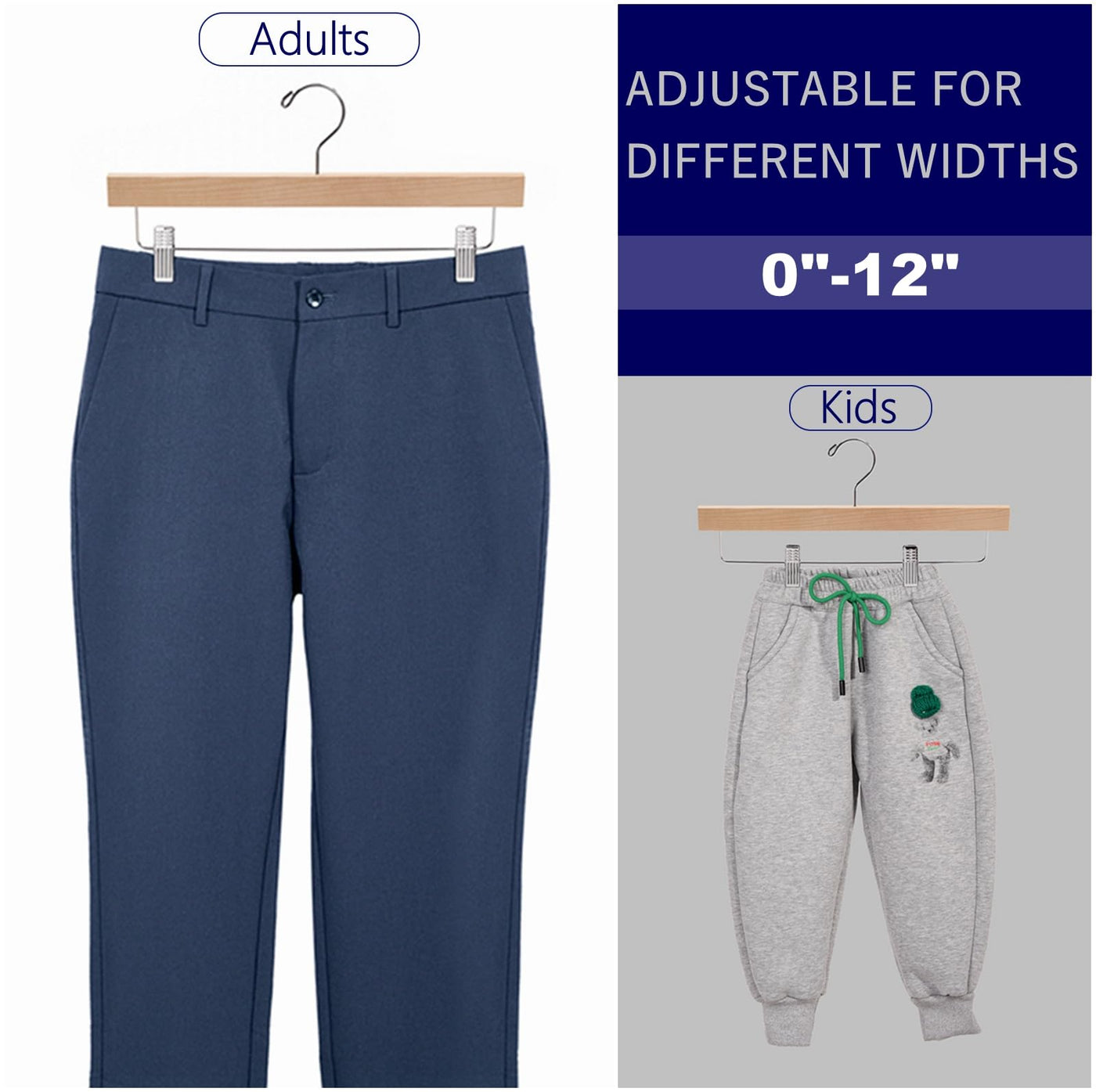 - Q: Can these hangers be used for both pants and skirts? A: Yes, the clips make these hangers suitable for both pants and skirts, providing flexibility in your wardrobe organization.