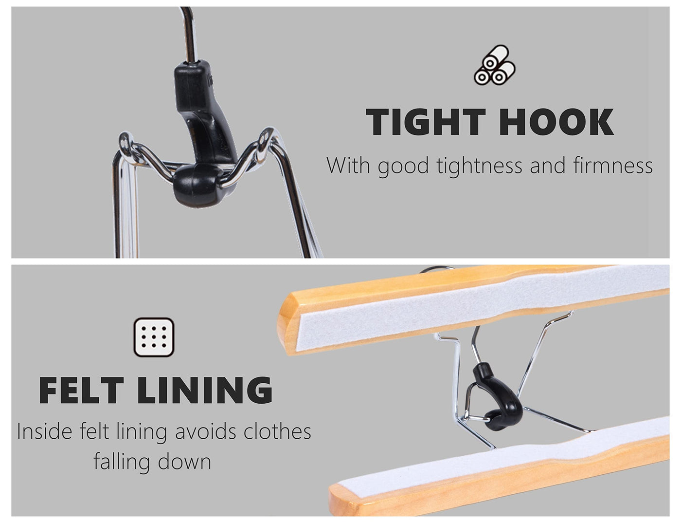 Amber Home 10 Pack Natural Wooden Pants Hangers, Wood Clamp Hangers With Non Slip Padded Velvet, Jeans/Slacks Hangers Hair Exten