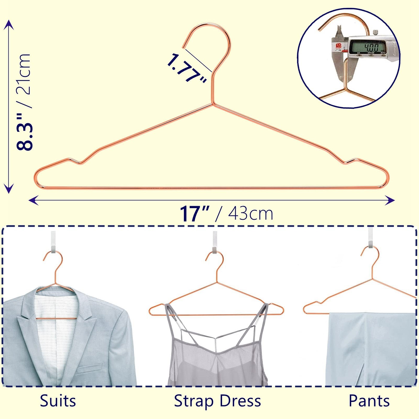 Amber Home 17'' Rose Gold Strong Metal Hanger 30 Pack, Copper Clothes Hangers, Heavy Duty Coat Hangers, Standard Suit Hangers Fo