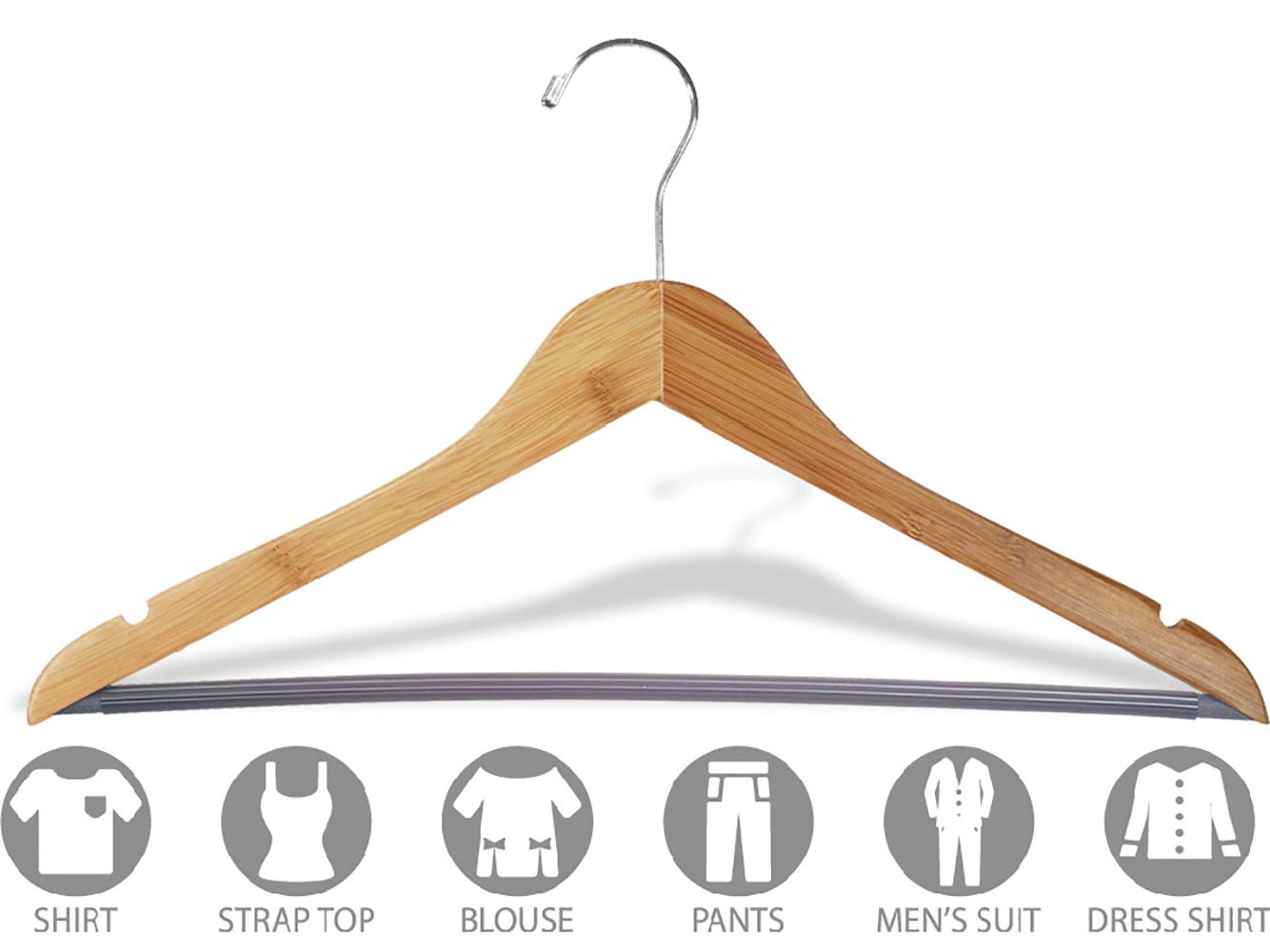 - Q: What kind of hardware is used in the Bamboo Suit Hanger? A: The hanger is equipped with anti-rust chrome hardware for durability.