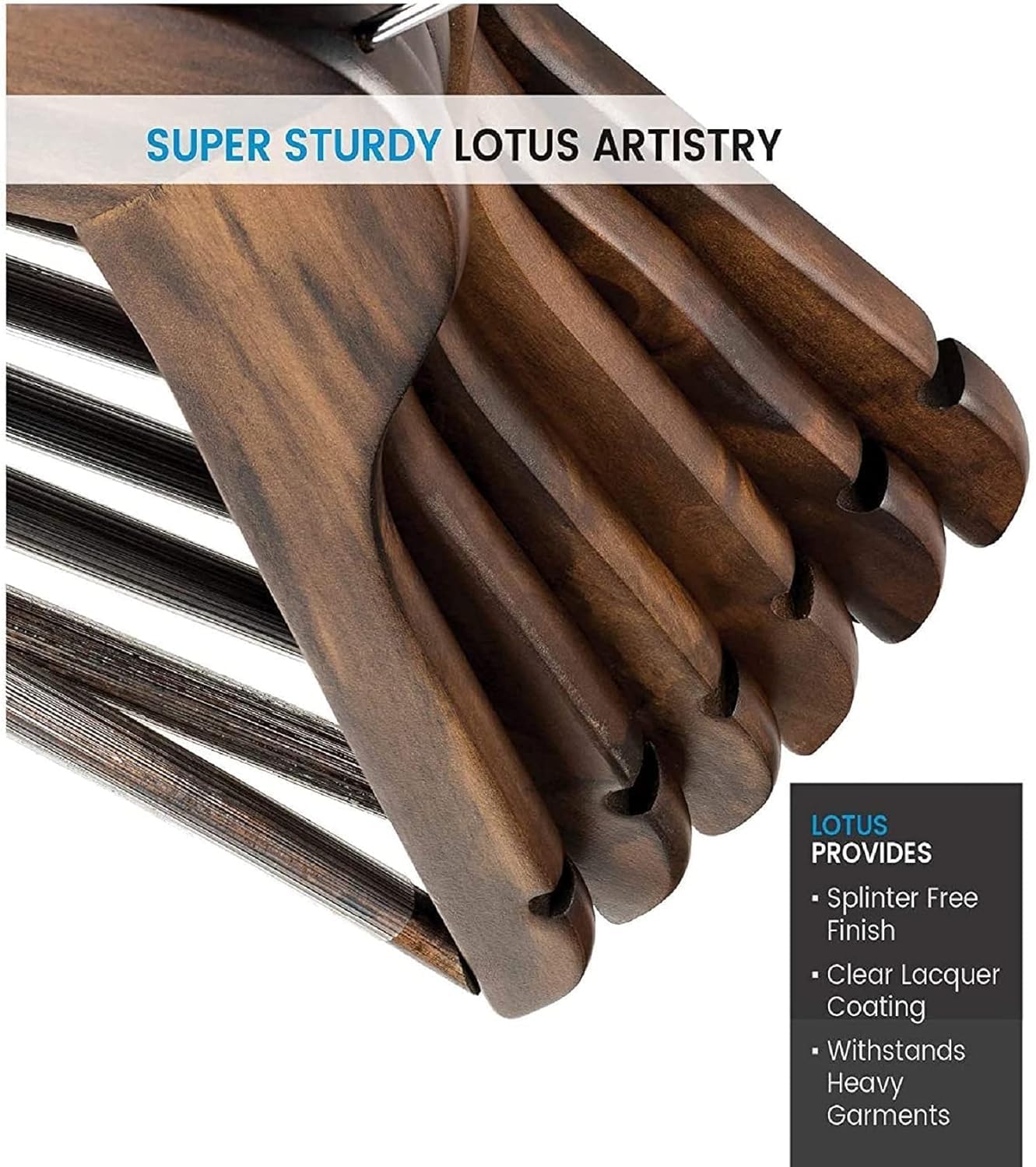 Barebeauty Solid Wood 360 Degree Swivel Chrome Garment Hangers With Non Slip Bar And Precisely Cut Notches Black Wooden Hanger (